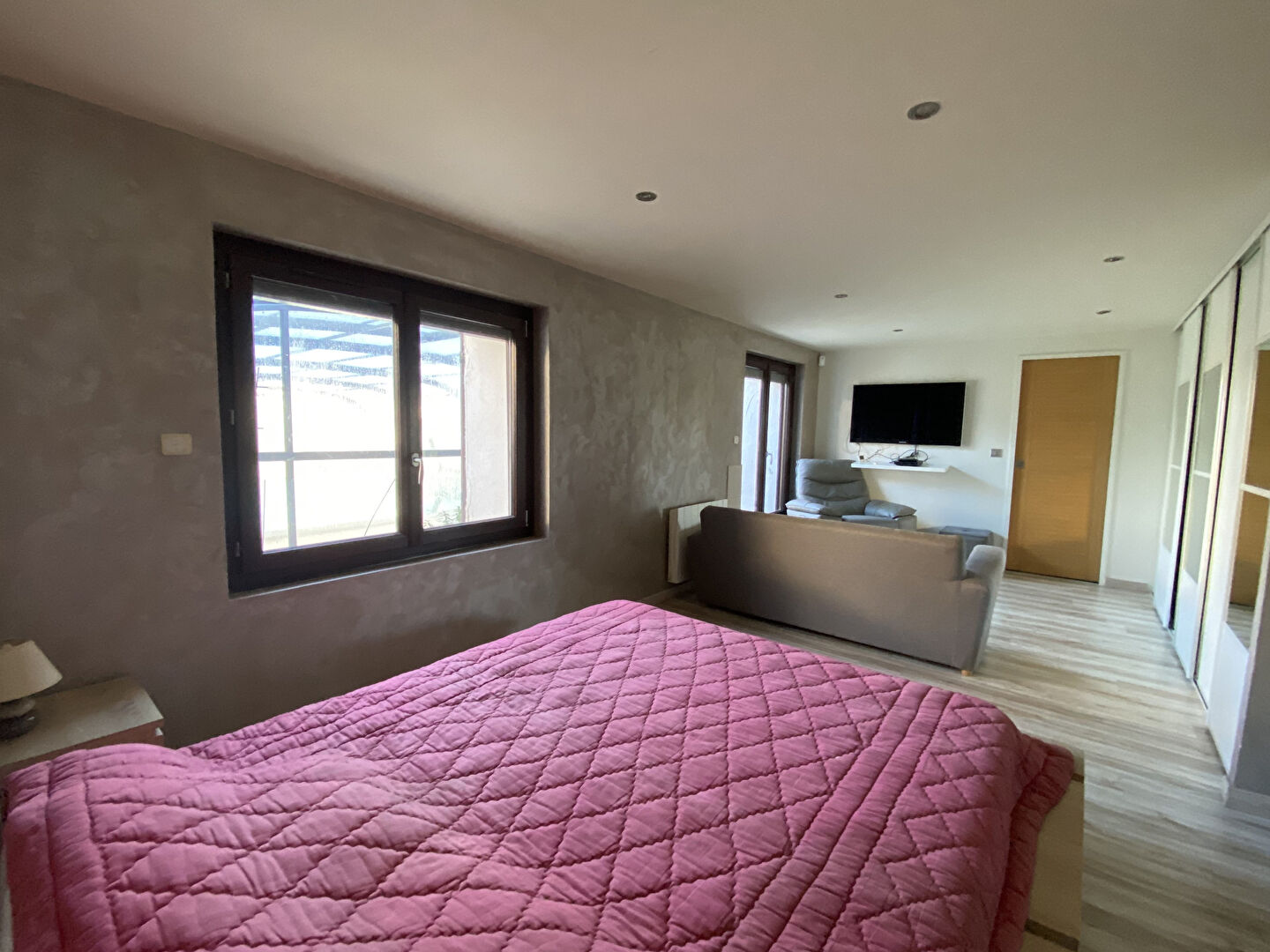 A l'intérieur, un salon-séjour cathédrale très lumineux et authentique avec sa cheminée. Une cuisine aménagée et équipée moderne pour votre confort. Une somptueuse suite parentale avec accès à la piscine comprenant un dressing et une grande salle de bains équipée d'une baignoire, d'une douche ainsi qu'un WC indépendant. Pour compléter, une seconde chambre avec accès terrasse, un bureau , une buanderie et un WC.