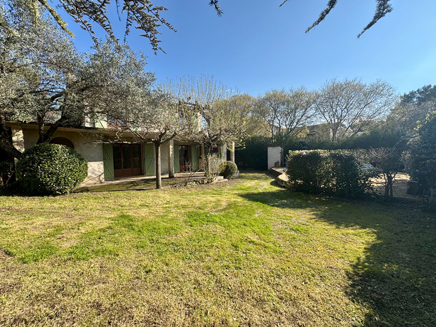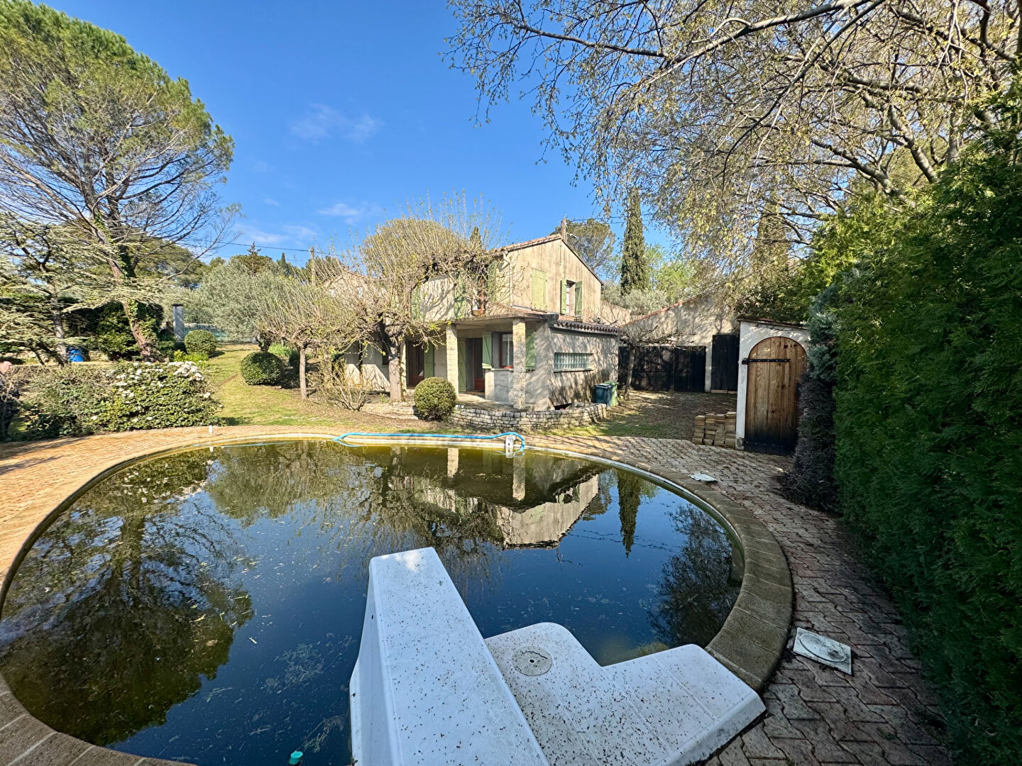 EXCLUSIVITE ! NIMES / SECTEUR COLLINE NORD - MAS DE ROULAN - Idéalement située au calme dans environnement privilégié et résidentiel, maison sur 2 niveaux, composée de 5 Pièces Principales dont 3 chambres, séjour, salon, salle à manger, cuisine séparée; l'ensemble pour une surface habitable de 107 M2 édifié sur un agréable terrain clos et arboré de 932 M2 avec piscine, double garage (39.42 M2) et terrasses. Travaux à prévoir - Nombreuses possibilités d'aménagement. DPE E - Honoraires inclus 4.82 % TTC Charge Acquéreur.