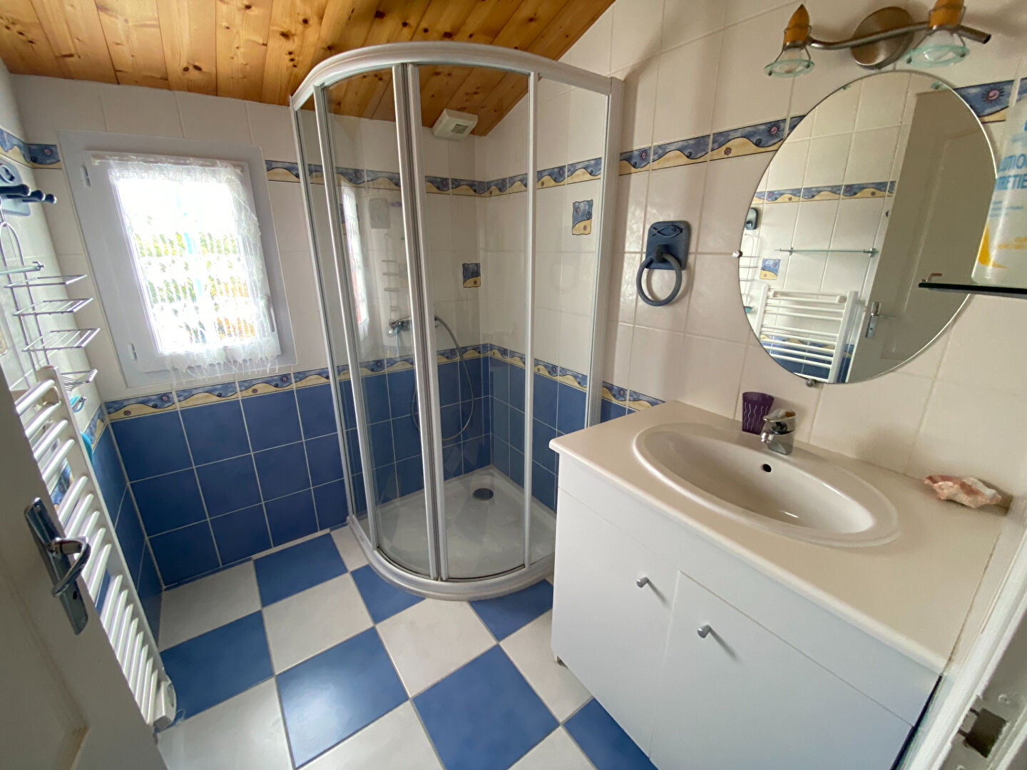 Entre centre et plages, au calme, maison de 2004 proposant 3 chambres et un bureau sur 600 m² de terrain clos et arboré, tout y est dans cette maison : garage, préau, poêle à granulés, 2 sde, 3 wc, véranda, parking, parfait état et beaux volumes !!!