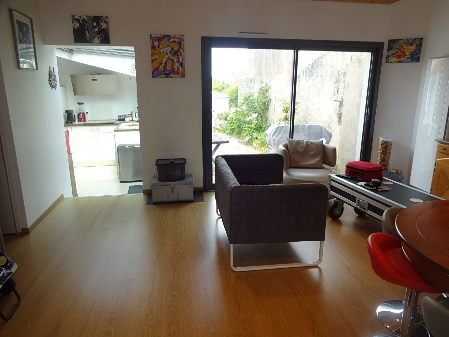 Charmante maison lumineuse, de plain pied avec jardin, offrant 2 chambres, un bureau, deux salles d'eau, une belle pièce de vie avec cuisine ouverte.