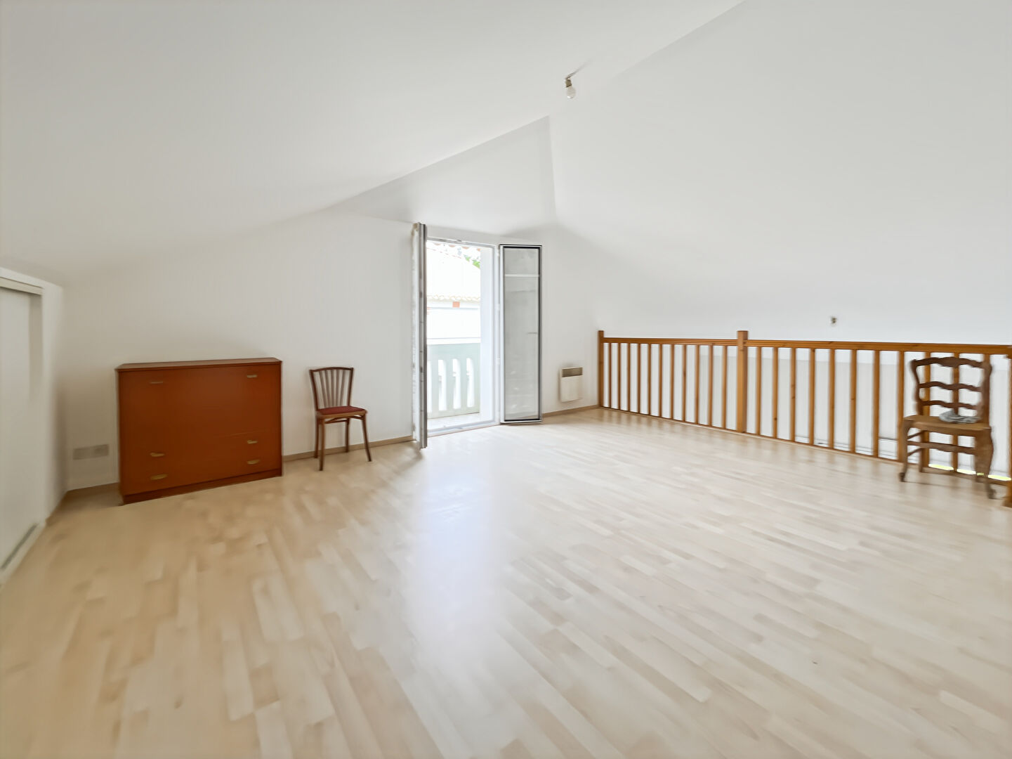 À l'étage : mezzanine d'environ 20 m² avec rangement donnant sur un balcon.