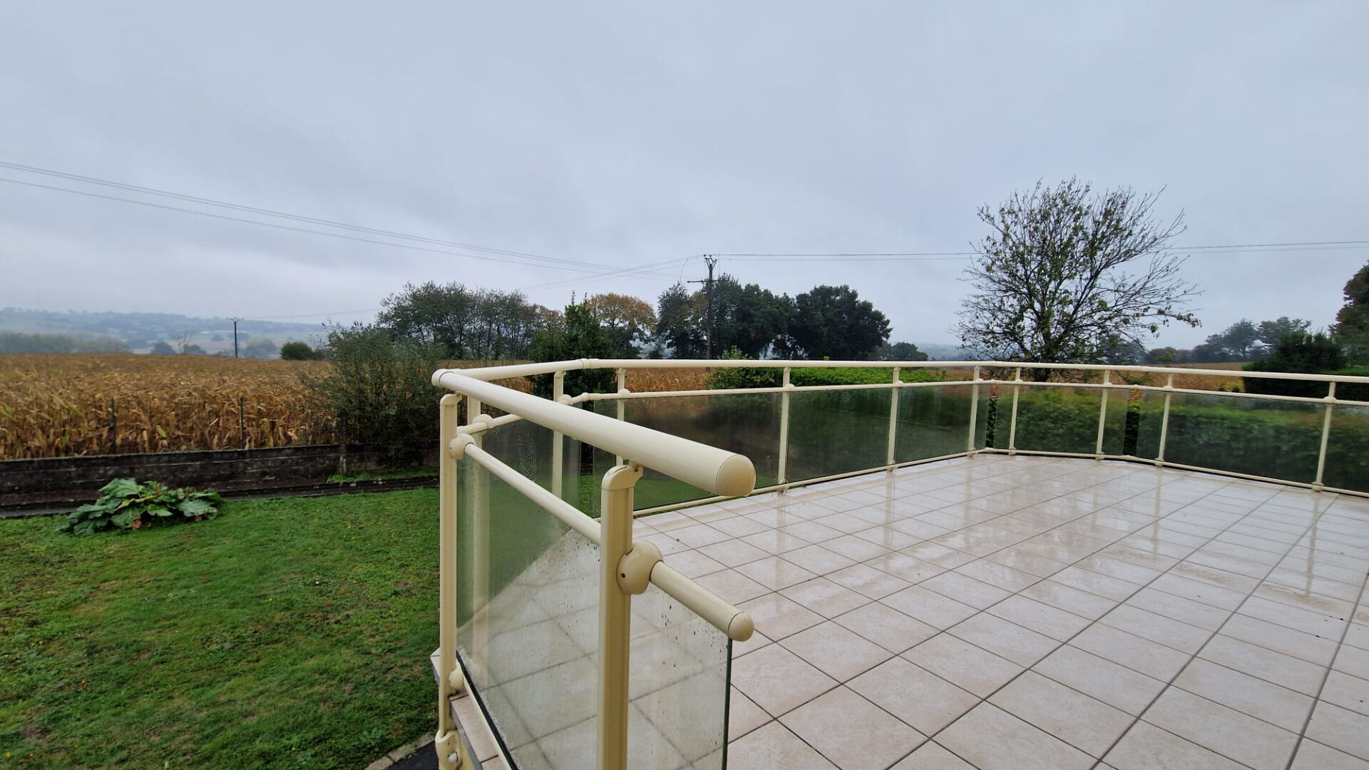À l'extérieur, vous profiterez d'un terrain clos de plus de 600 m² et d'une superbe terrasse en surplomb, offrant une vue dégagée sur la campagne, parfaite pour vos moments de détente en famille ou entre amis.
