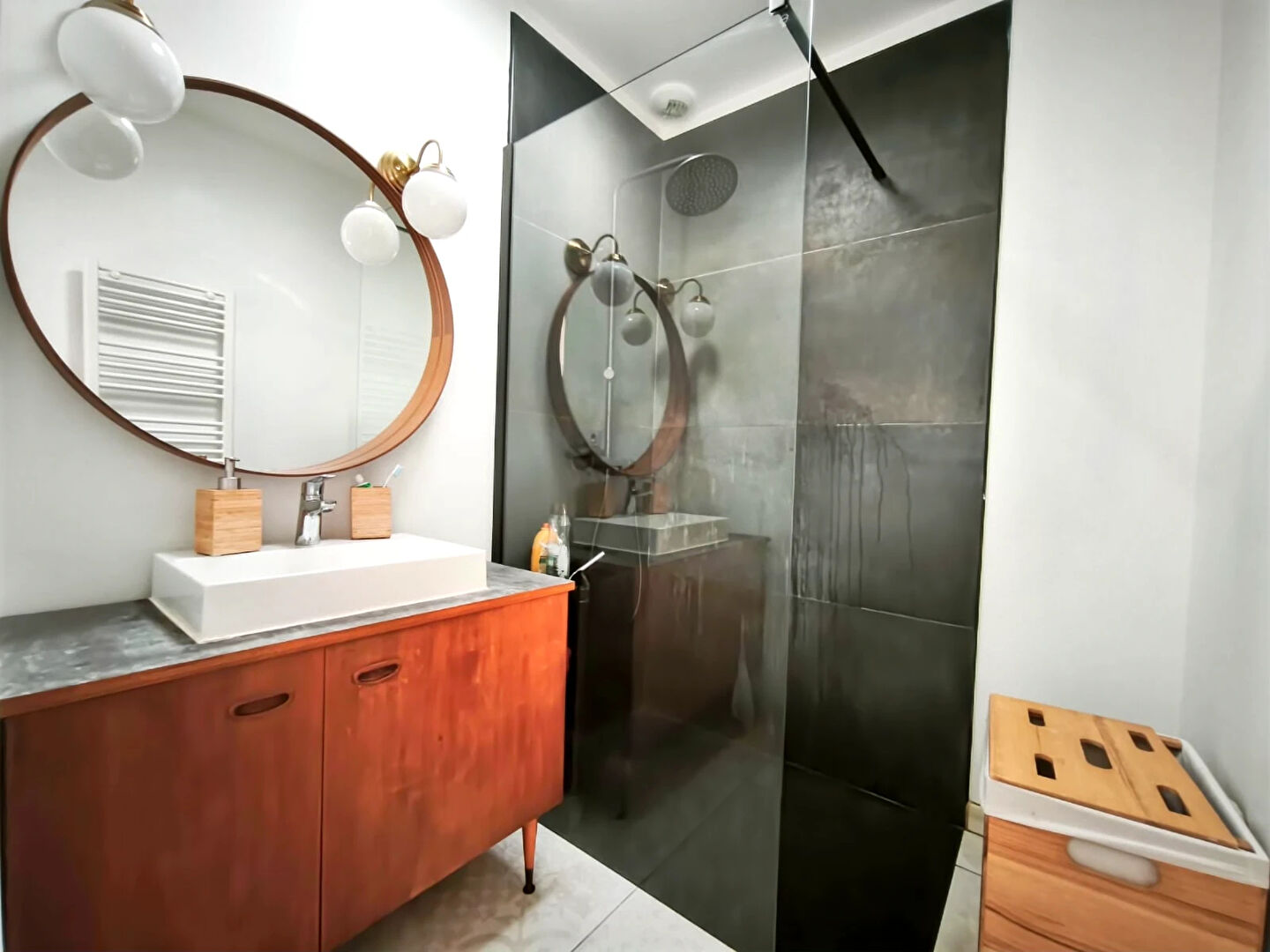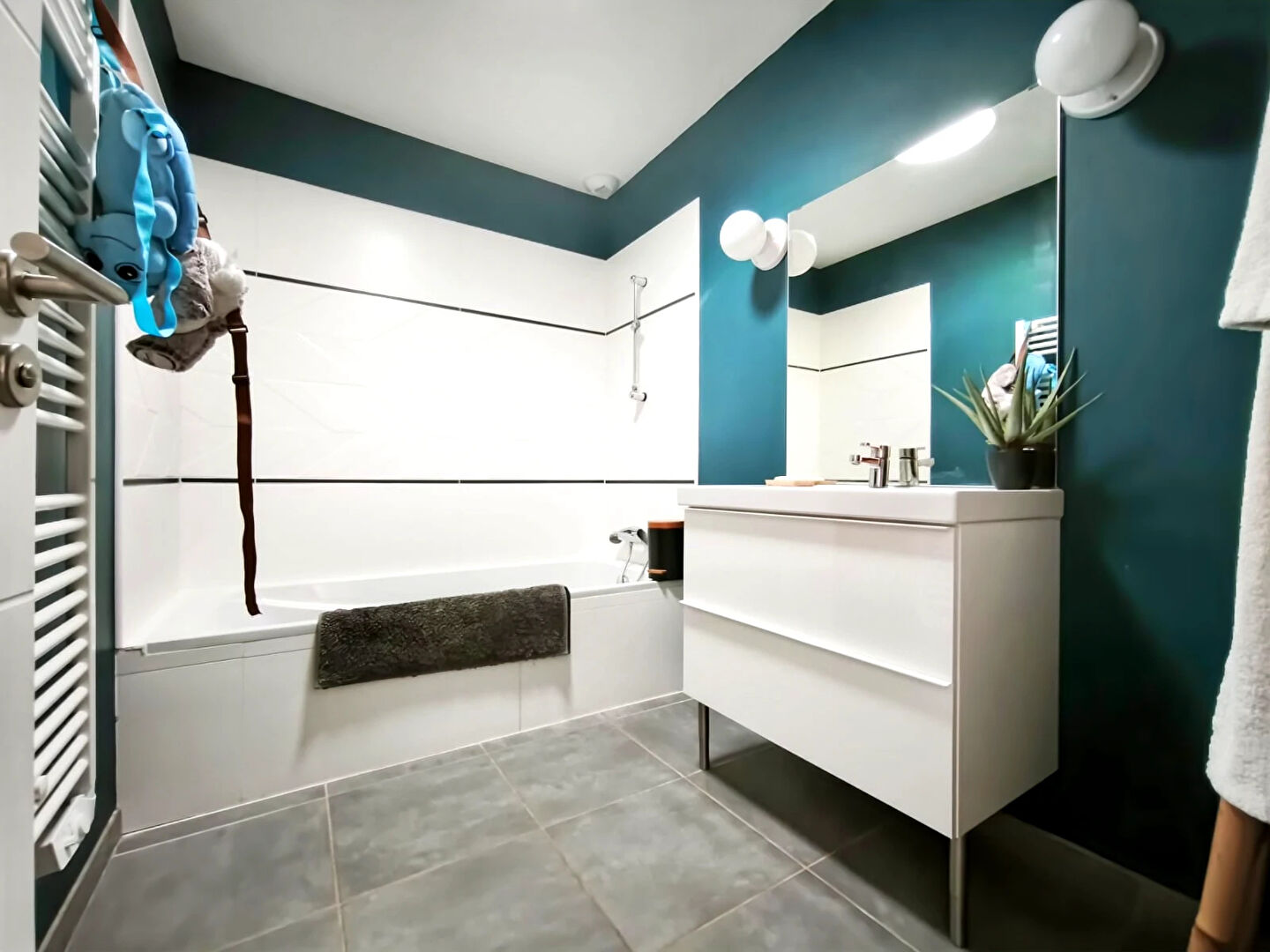 La partie nuit est composée de 2 chambres avec placards et d'une suite parentale avec dressing et salle d'eau. En plus une salle de bains avec baignoire, idéale pour le bain des enfants.
