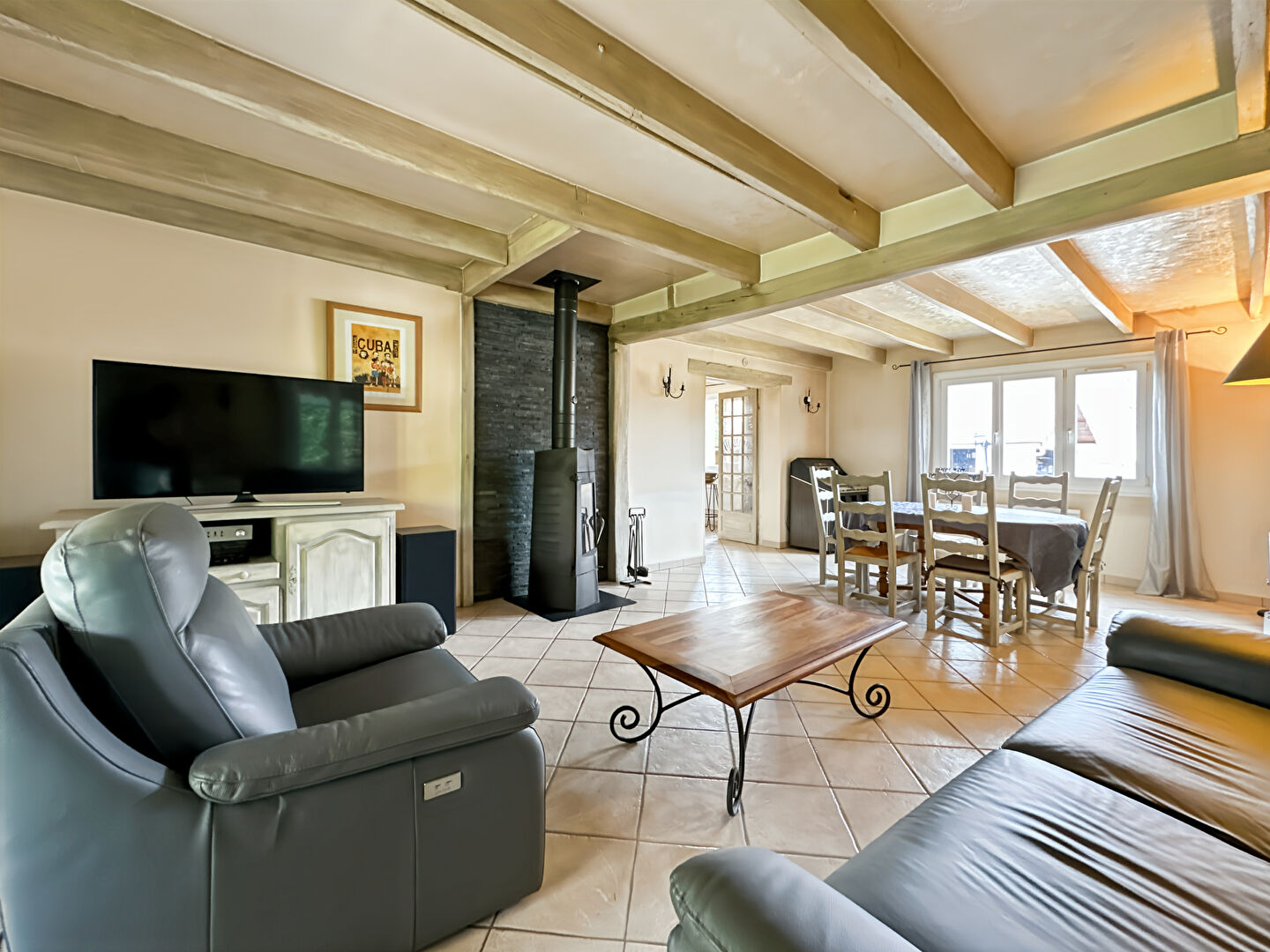 Idéalement situé au calme d'une impasse, venez découvrir cette maison familiale avec dépendances proposant une grande entrée desservant un salon avec poêle à bois et une cuisine équipée ouverte donnant tous deux sur une grande terrasse couverte, parfaite pour passer d'agréables soirées estivales. Le rez-de-chaussée propose également 2 chambres, une salle d'eau et un WC.