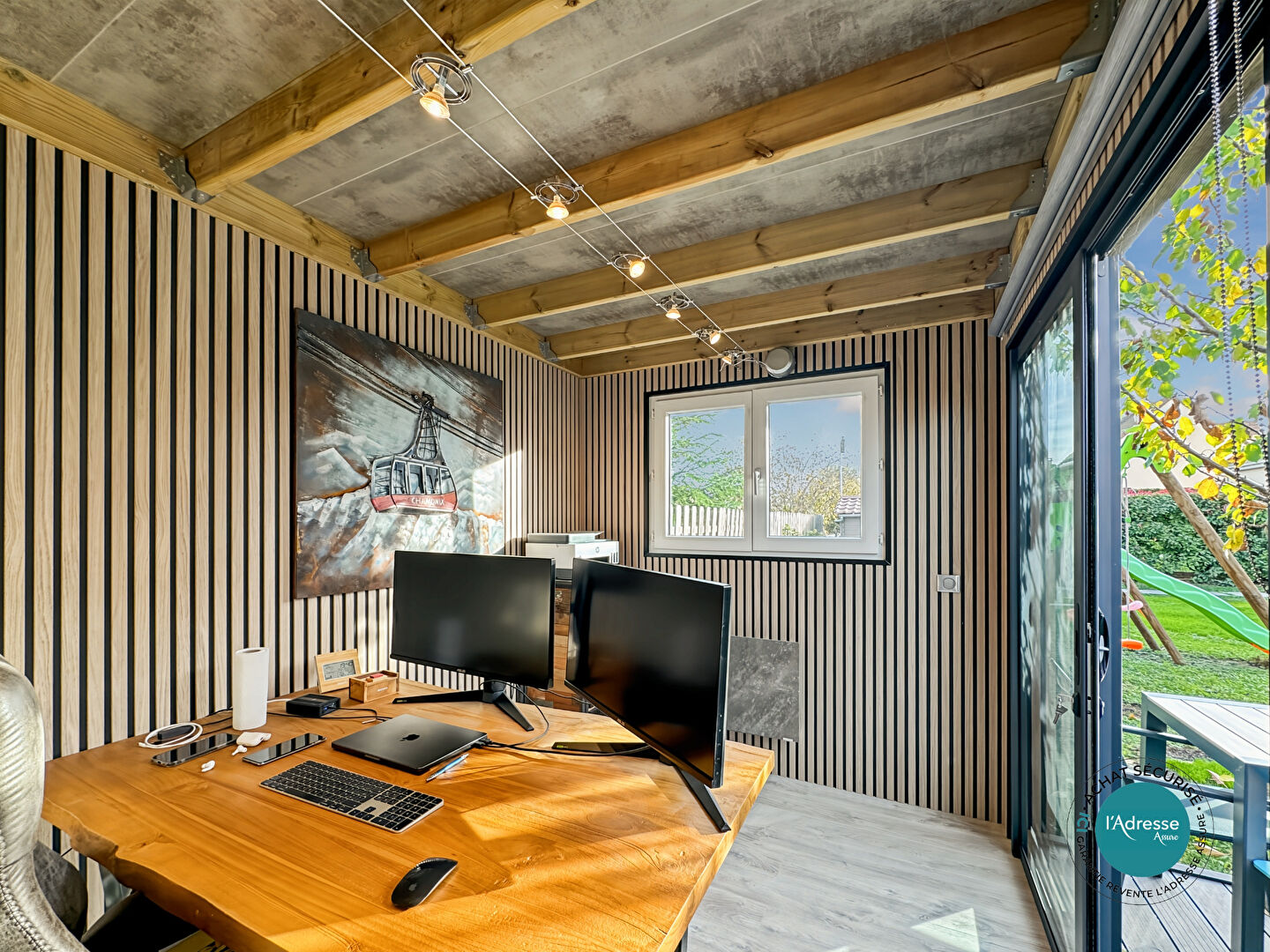 À l'extérieur, profitez d'une grande cour de stationnement à l'avant et d'un jardin arboré à l'arrière, sans vis-à-vis, avec un abri de jardin / atelier, ainsi qu'une pièce indépendante idéale pour le télétravail ou une profession libérale.