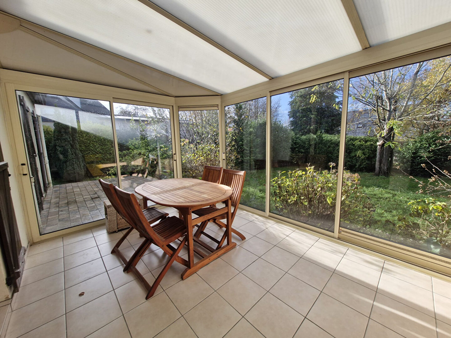 Une véranda de 10 m2complète l'ensemble et vous permet de profiter d'un espace supplémentaire baigné de lumière toute l'année.