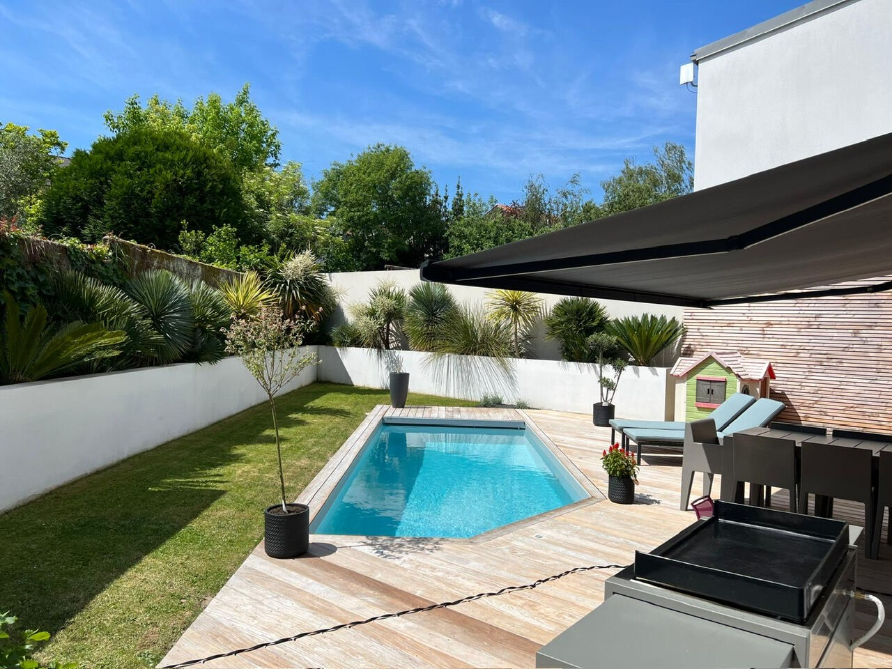 La maison invite à la détente avec une belle terrasse exposée sud-ouest, idéale pour profiter des beaux jours. Une piscine chauffée vient parfaire cet espace extérieur, véritable atout pour des moments de convivialités en famille ou entre amis.