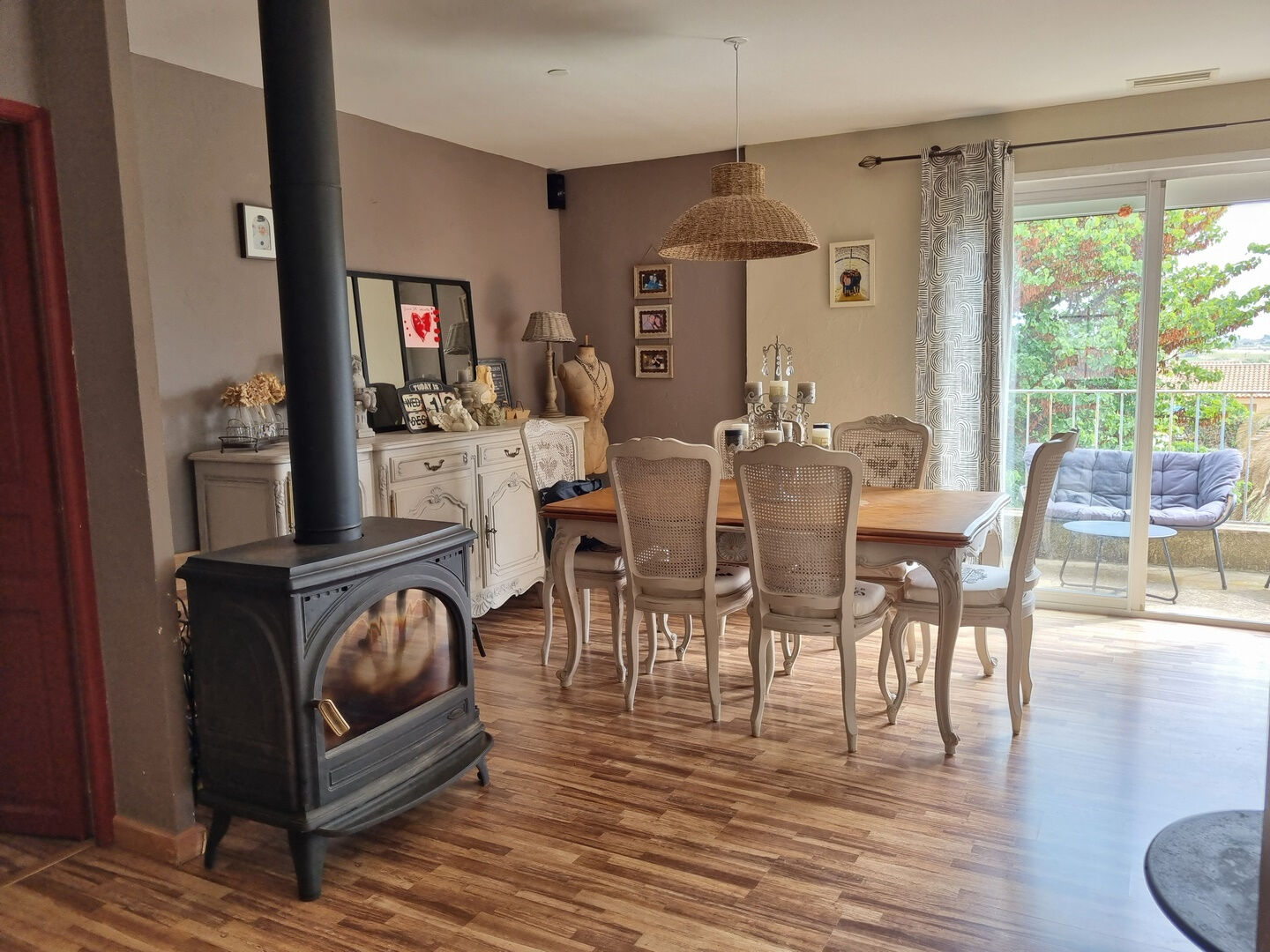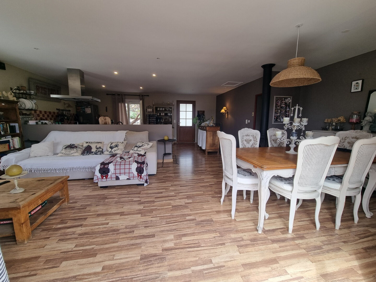 En plain pied, vous serez séduit par une spacieuse pièce de vie de 51 m², avec cuisine ouverte, baignée de lumière naturelle, équipée d'une climatisation réversible et d'un poêle à bois pour un confort optimal toute l'année.
