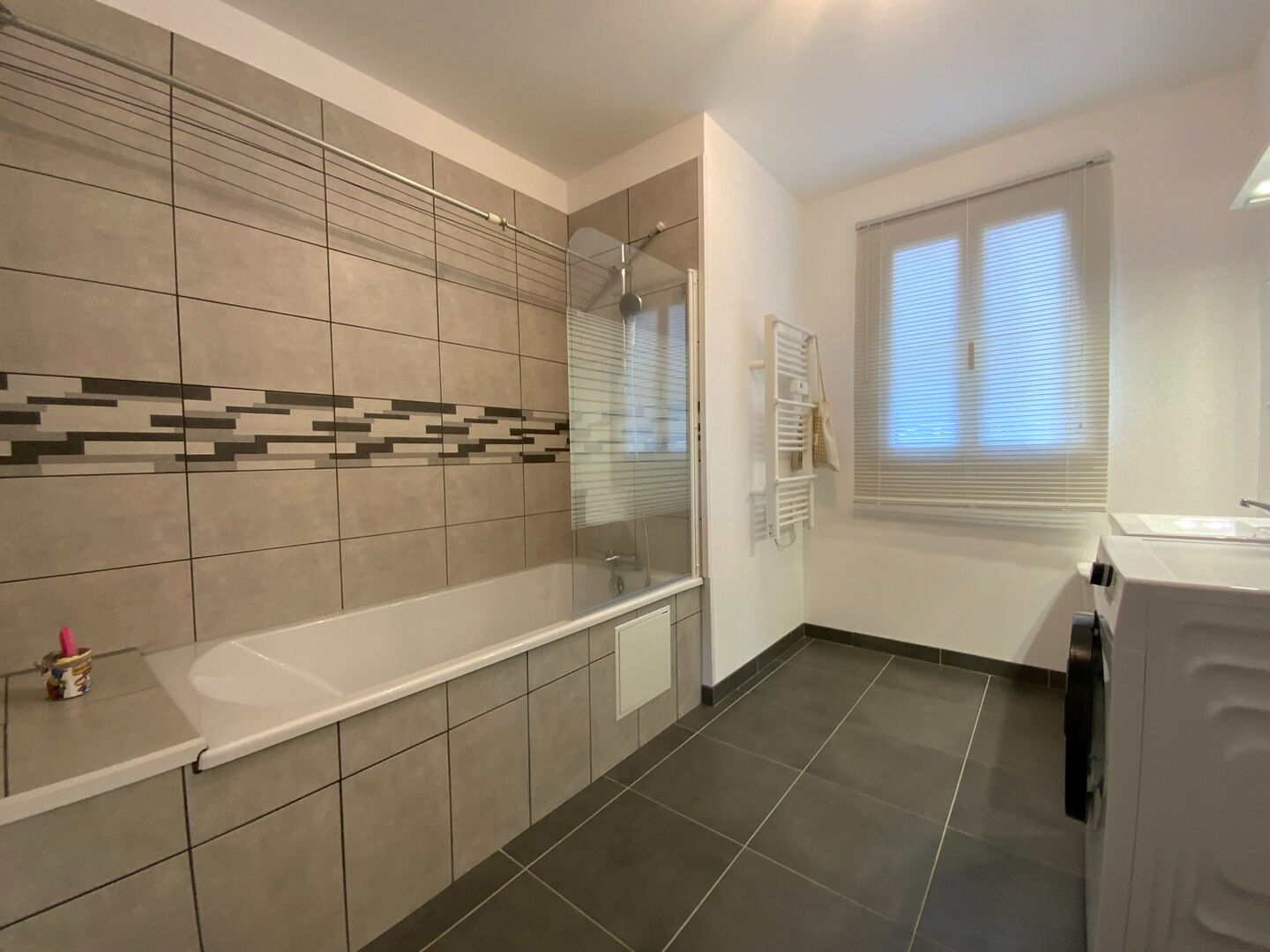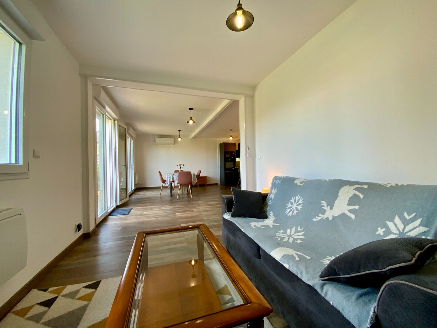 Dotée de deux grandes chambres dont une avec sa salle d'eau, elle dispose également d'un bel espace de vie avec cuisine ouverte équipée et un coin salon transformable en une 3ème chambre, Une seconde salle de bain vient compléter l'ensemble.