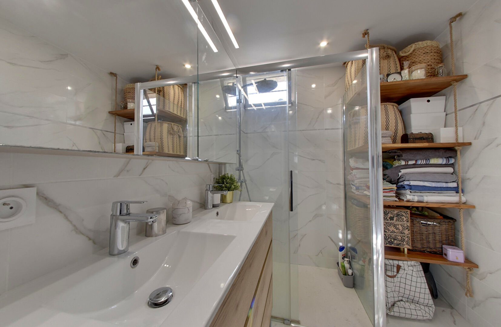 À l'étage, le charme opère avec trois chambres spacieuses avec dressings et une salle d'eau récente et élégante un vrai plus pour le quotidien.
