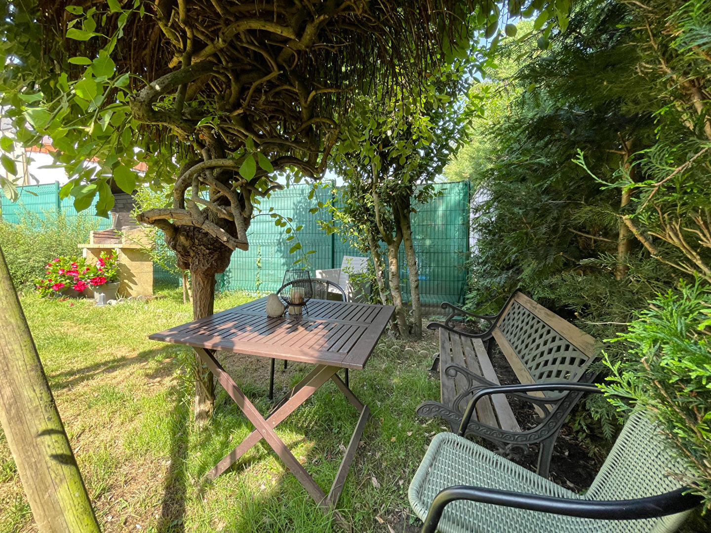 Côté extérieur, vous profitez d'une terrasse et d'un jardin intimiste, dont un agréable coin ombragé, parfait pour les belles journées d'été.