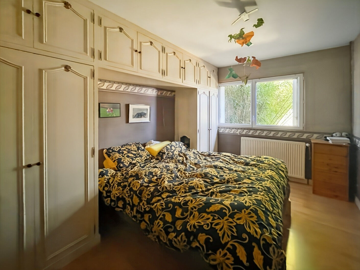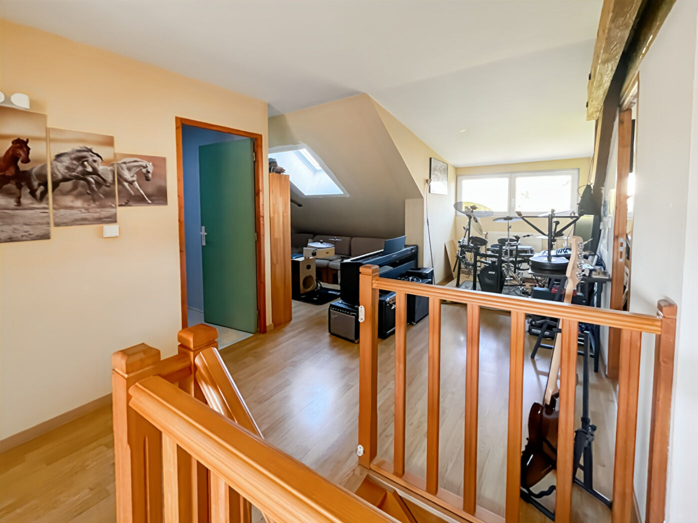 Offrant un cadre de vie paisible et sans vis-à-vis, elle dispose d'une surface habitable de 165 m² répartie en six pièces, dont quatre chambres, et convient parfaitement à une famille recherchant confort, espace et tranquillité. Le rez-de-chaussée comprend deux chambres, deux salles d'eau, un bureau, un salon lumineux avec poêle à bois ainsi qu'une cuisine aménagée et équipée. À l'étage, un espace dédié aux enfants propose deux chambres supplémentaires et une salle de bain.