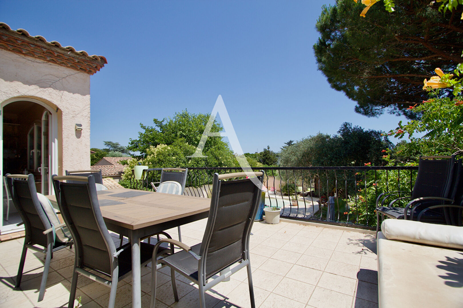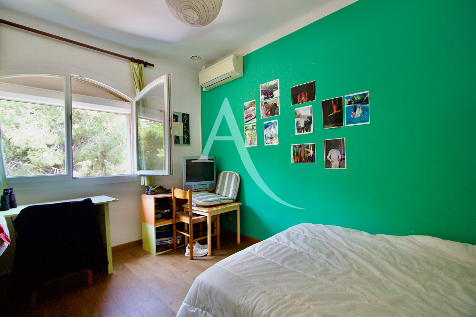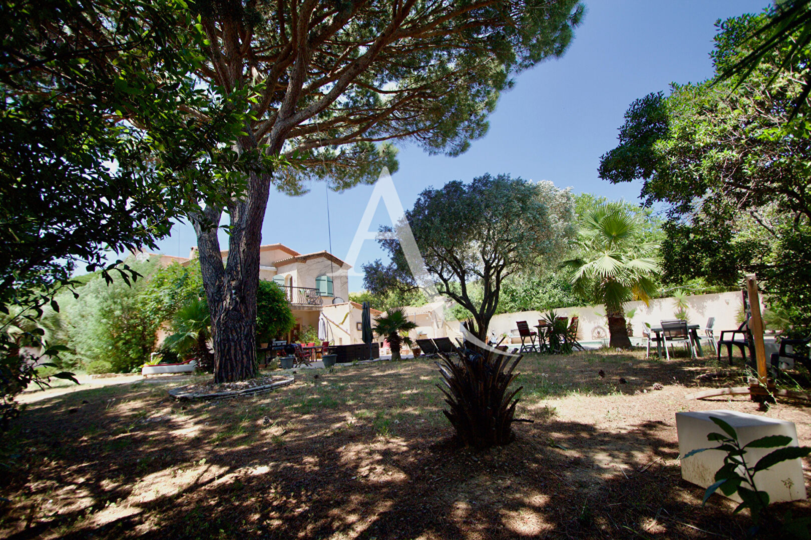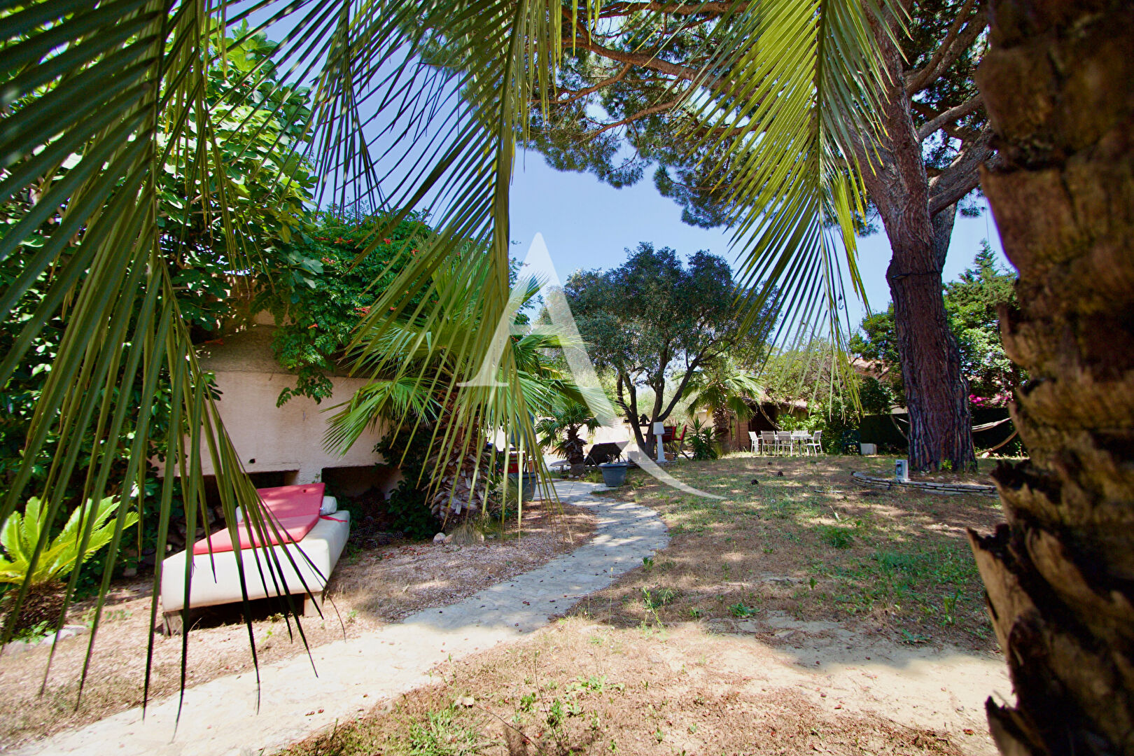 Sur une parcelle généreuse de 1300 m², le jardin paysagé vous plonge dans un cadre verdoyant et intime, entre pin parasol majestueux et oliviers.