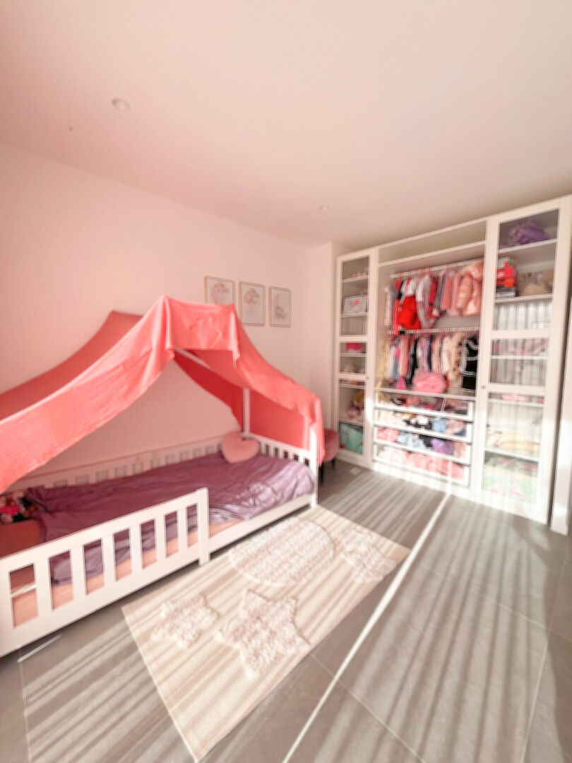 L'étage, accessible par un élégant escalier suspendu, propose deux chambres d'environ 13 m² avec rangements, une salle de bains et un WC indépendant, offrant confort et fonctionnalité à l'espace nuit.
