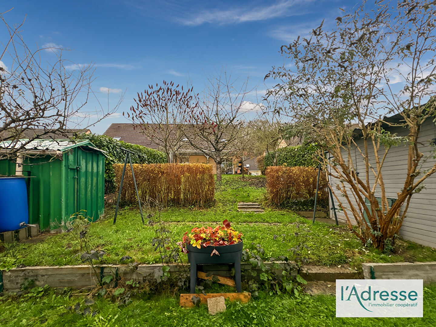 Joli jardin sans vis a vis d'environ 400 m2 avec deux cabanon de jardin.