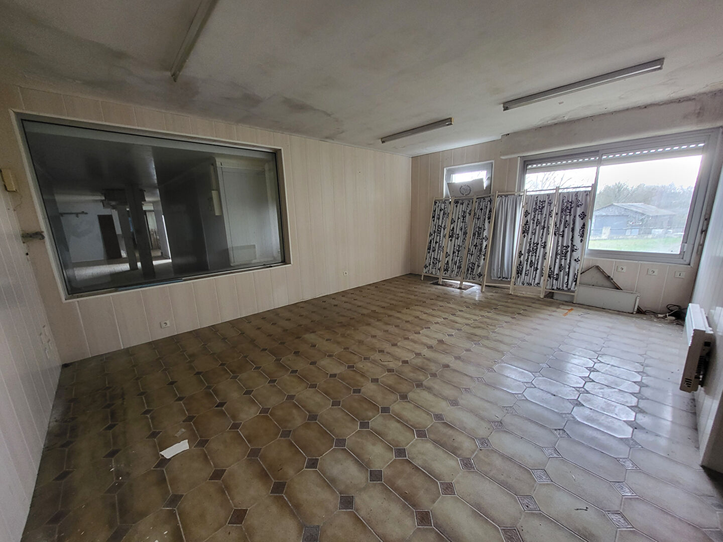 Le deuxième bâtiment vous propose environ 300m² au sol divisé en plusieurs cellules (démontable). Un espace bureau de 25m², un espace sanitaire comprenant 2 WC.