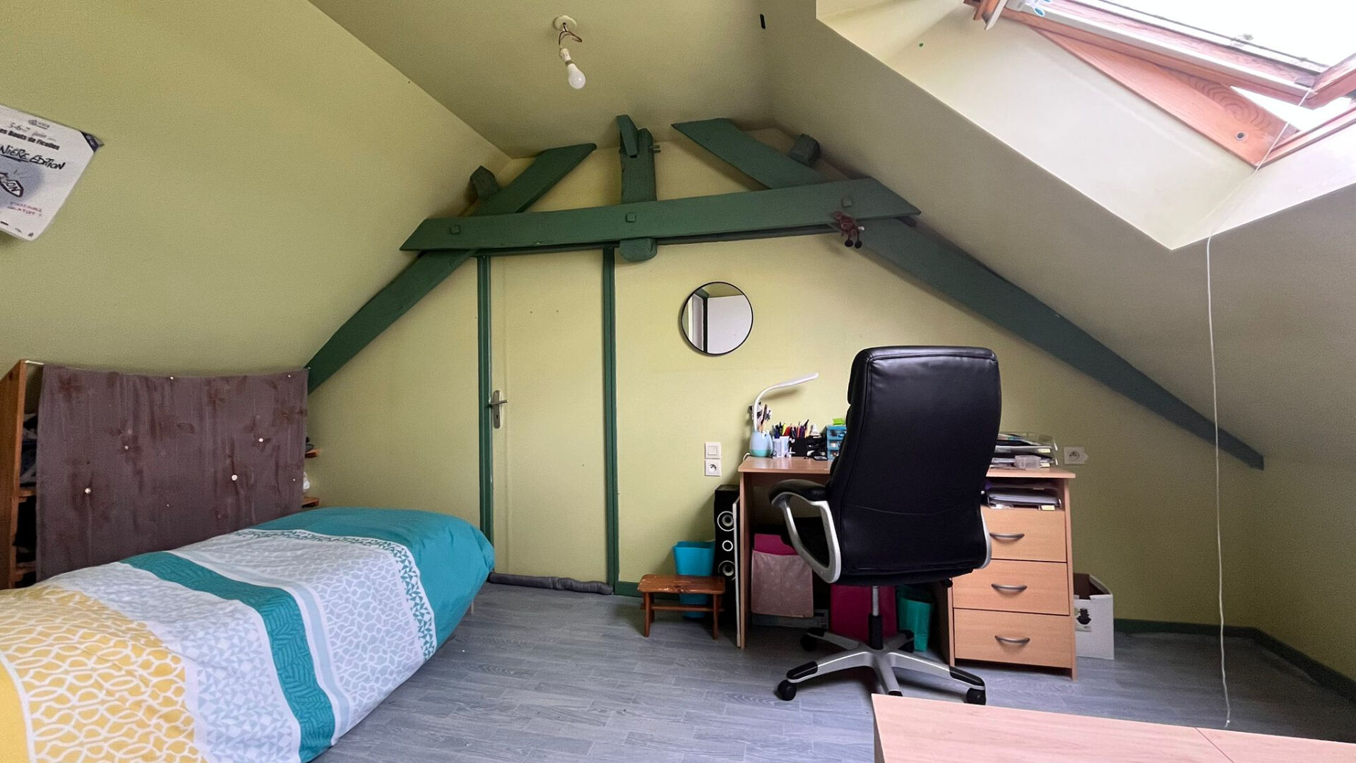Le dernier niveau accueille une troisième chambre, idéale pour un adolescent, une chambre d'amis ou un espace plus indépendant. Un grenier attenant vient compléter ce niveau, laissant la place à de multiples aménagements selon vos envies : bureau, salle de jeux ou simple rangement.