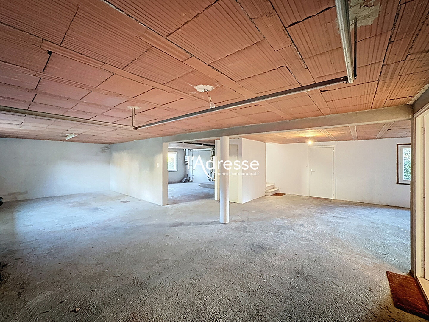 Au rez-de-chaussée, la maison propose un immense garage de 104m² offrant de nombreuses possibilités d'aménagement, une chambre de pouvant servir de bureau ainsi qu'un espace buanderie très fonctionnel.