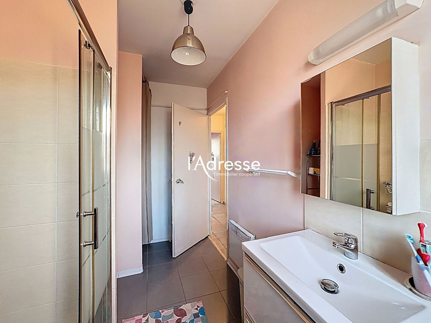 Une salle d'eau avec WC