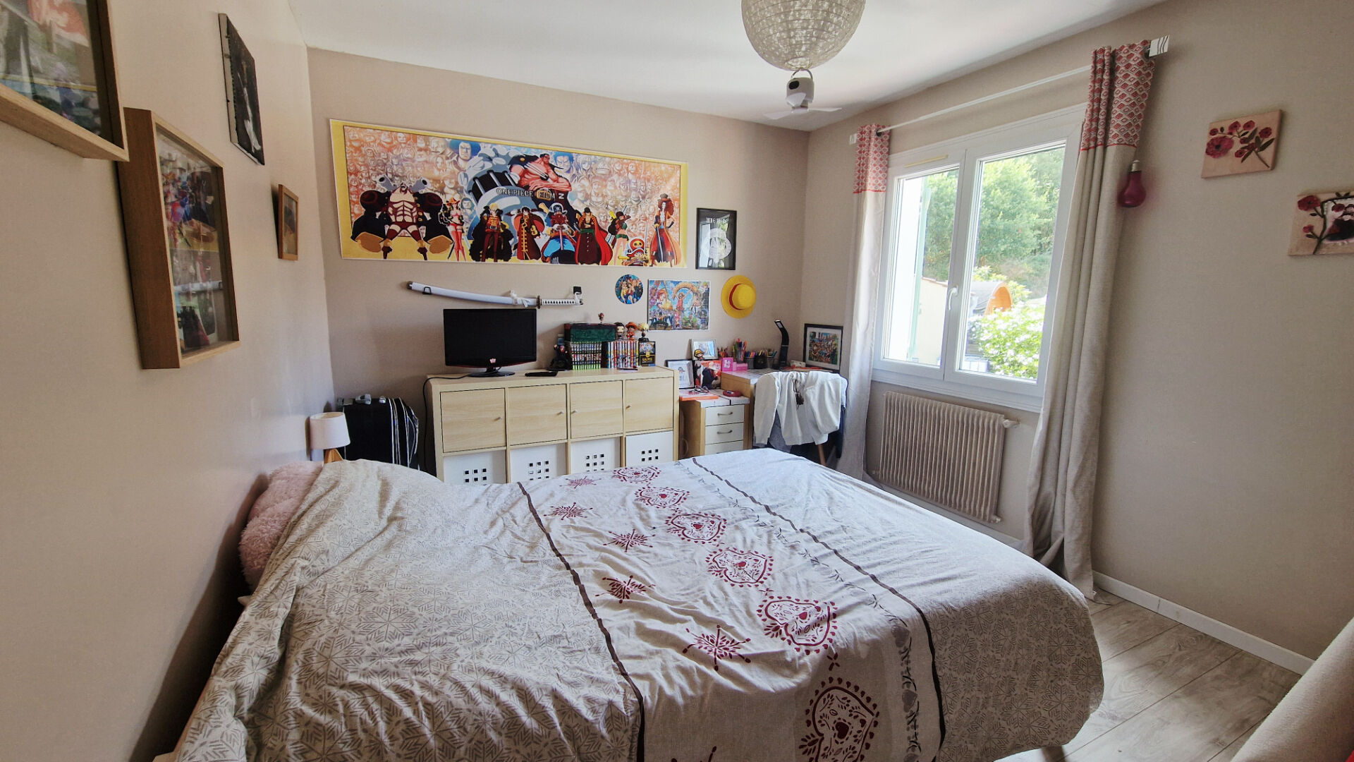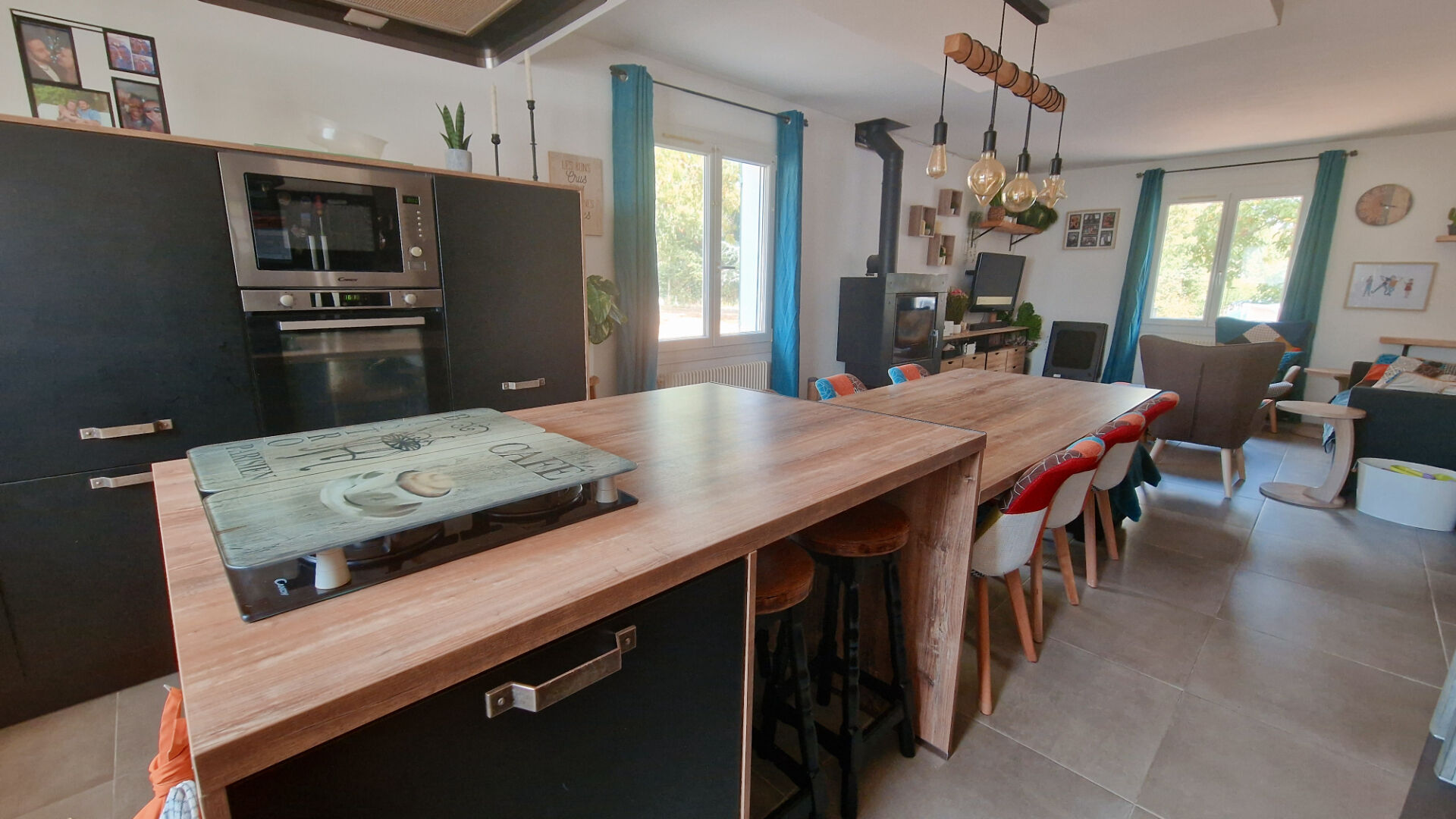 Elle se compose d'une entrée, d'une vaste pièce de vie lumineuse avec cheminée insert, d'une cuisine spacieuse aménagée et équipée, de cinq chambres, d'une salle de bains, de deux W.C, ainsi que d'un garage et d'un abri de jardin.