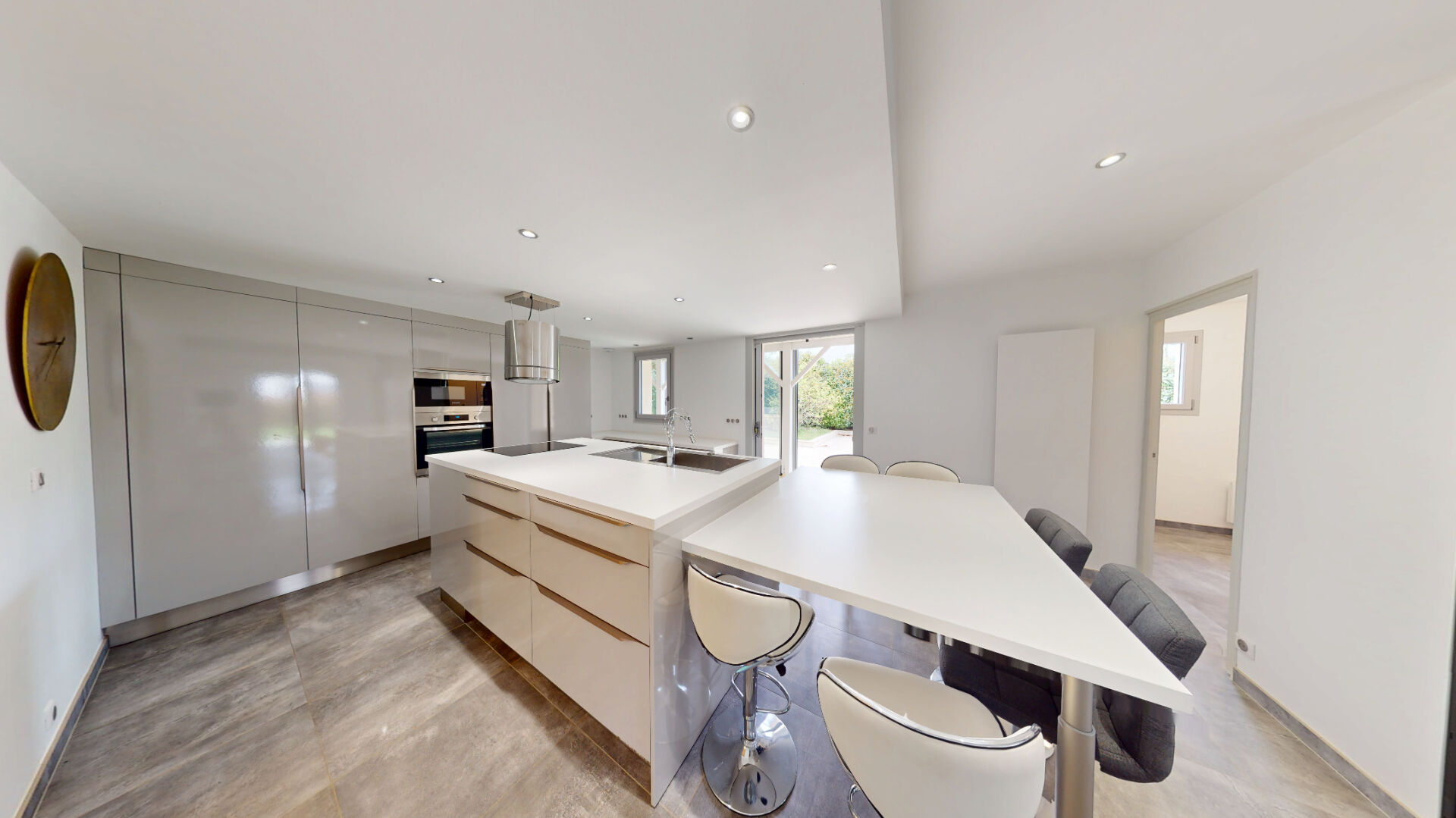 Dès l'entrée, vous serez séduit par ses volumes généreux : une vaste entrée dessert sur une cuisine aménagée et entièrement équipée, ouverte sur un grand séjour convivial. Cet espace de vie lumineux est parfait pour partager des moments en famille ou entre amis.