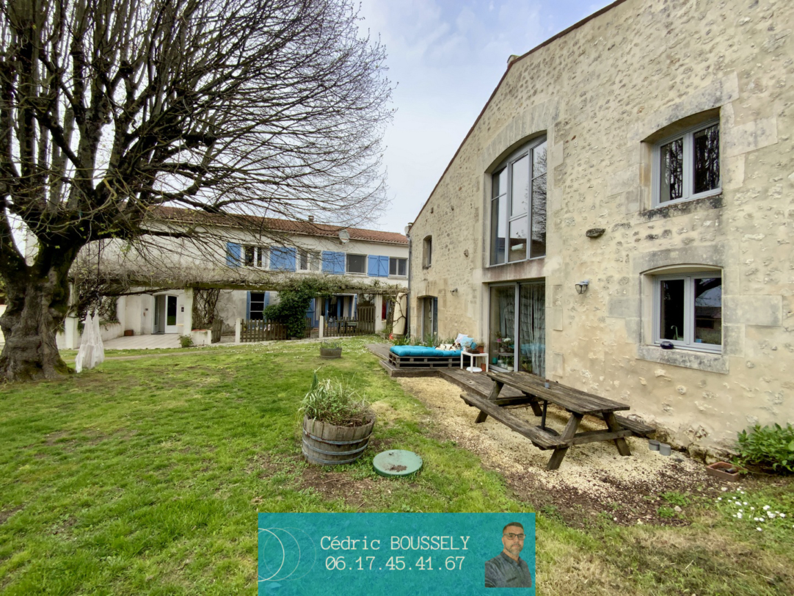À seulement 9 min de Pons, 12 min de Jonzac et proche de l'A10, découvrez cette propriété rare : une ancienne ferme viticole réhabilitée en un ensemble immobilier de caractère, composé d'une maison principale écologique de près de 180 m² et de 5 gîtes exploitables immédiatement (environ 400 m² au total). Le tout niché dans un environnement paisible et verdoyant, au coeur des vignes.