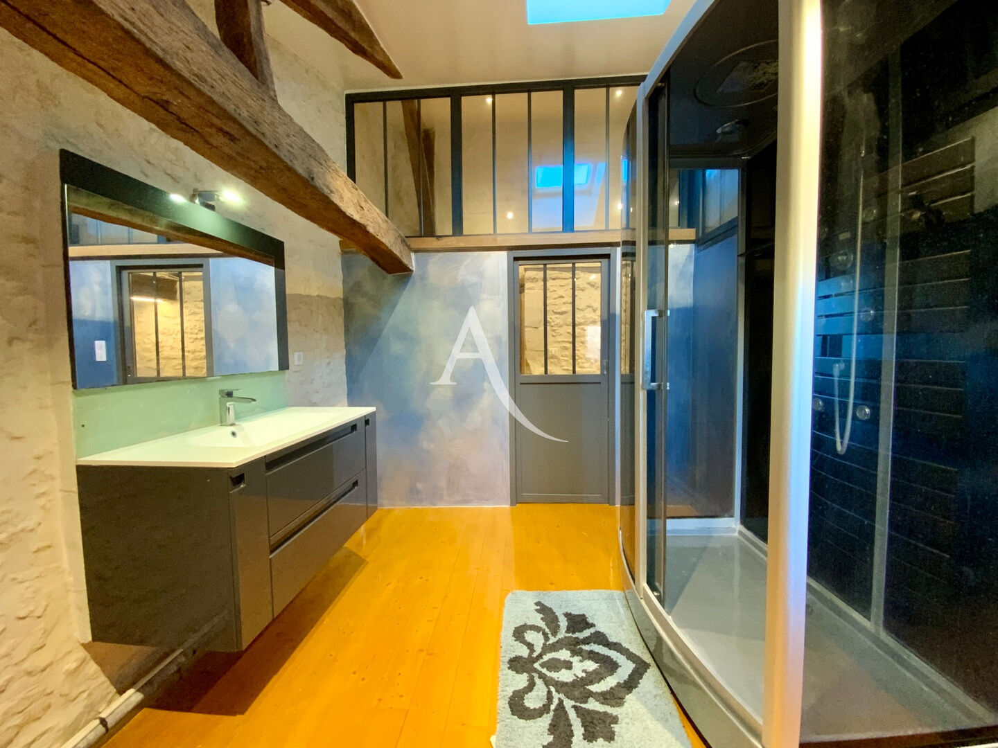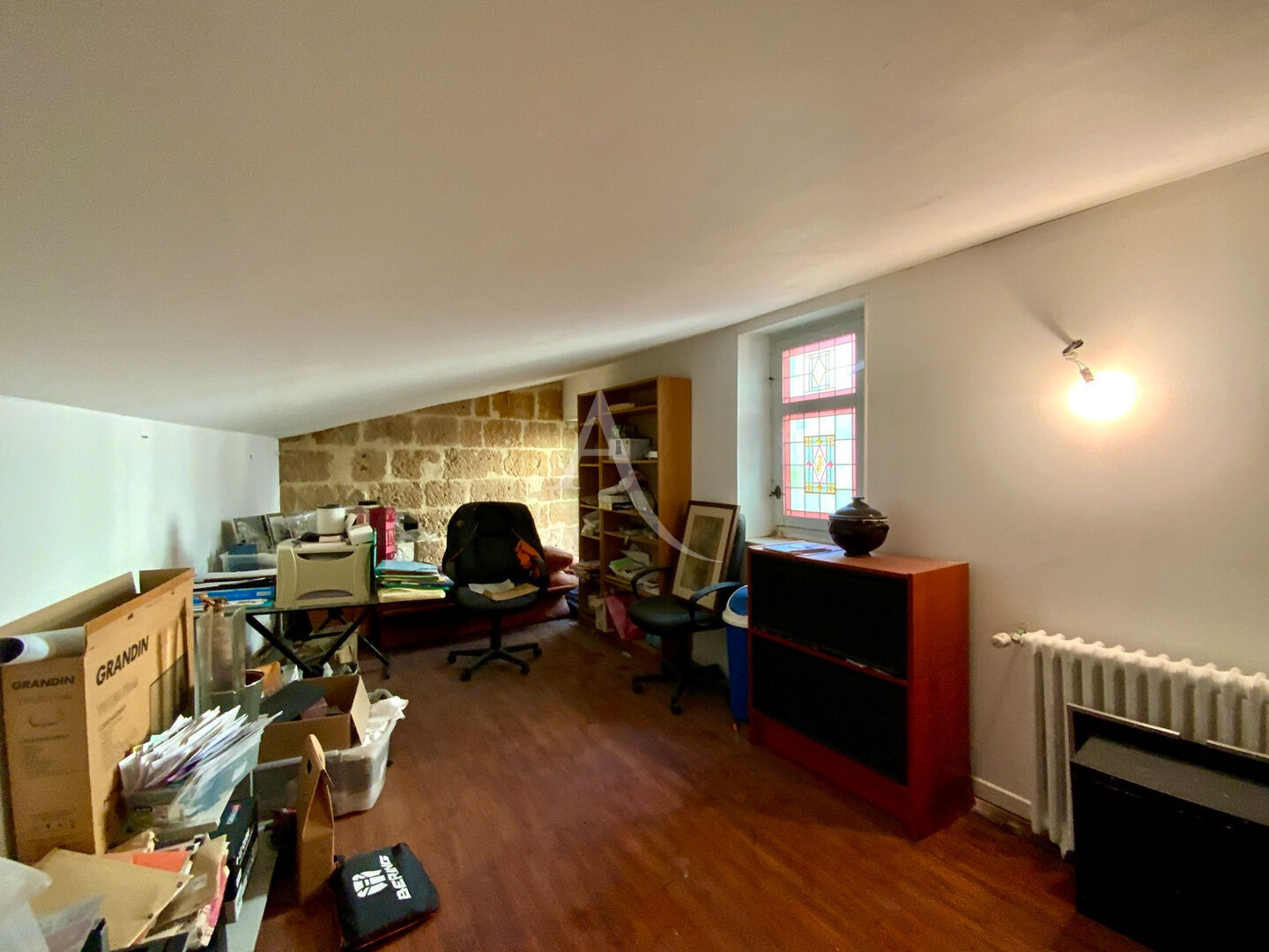 À l'étage : grand salon lumineux, vaste salle à manger, cuisine indépendante et moderne, bureau, WC.
