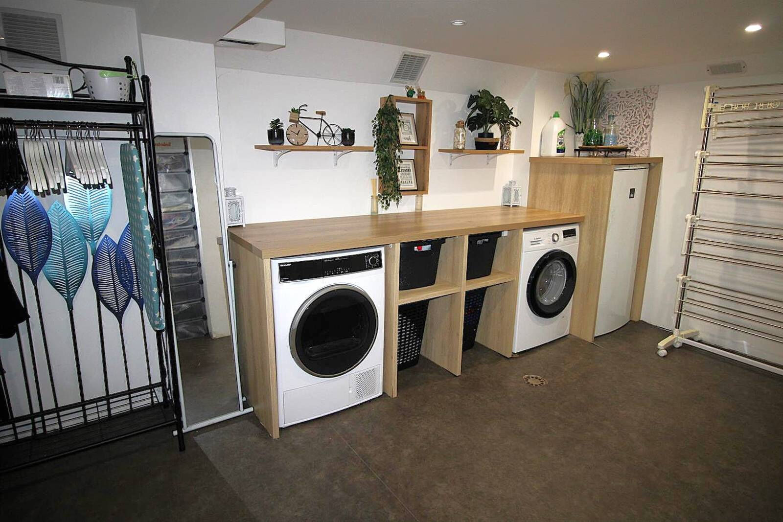 - sous-sol total, aménagé tel un petit appartement avec cuisine d'été/ salon, chambre, buanderie pouvant recevoir une salle de bains, mais aussi un grand garage avec porte motorisée
