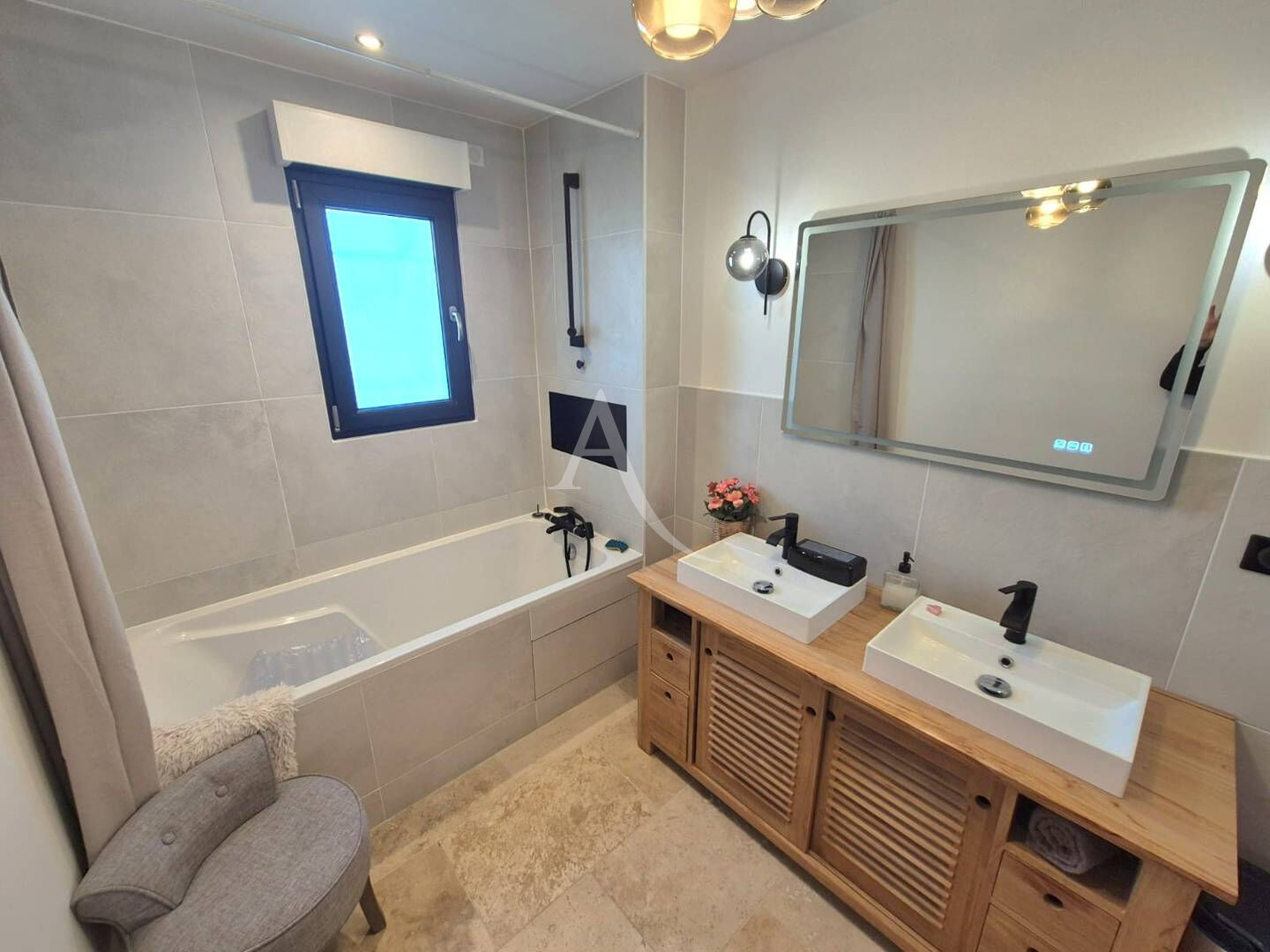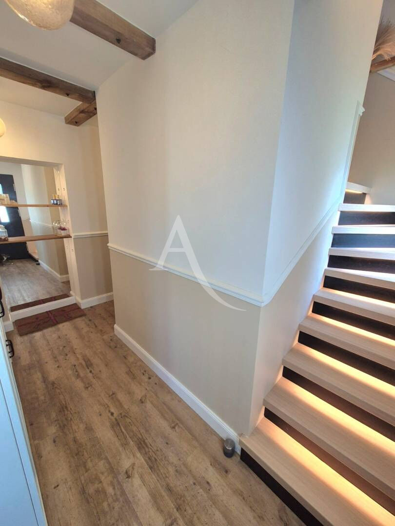 Charmante maison entièrement rénovée sur sous-sol total, édifiée sur un terrain de 418 m², offrant de beaux volumes. Elle se compose au rez-de-chaussée d'une entrée, d'un salon avec poêle à granulés, d'une salle à manger, d'une cuisine aménagée et équipée, de deux chambres, d'une salle de bain et d'un WC, permettant une vie de plain-pied. À l'étage, trois chambres supplémentaires dont une suite parentale avec douche et rangements, ainsi qu'un WC. Le sous-sol total offre de nombreuses possibilités (garage, atelier, stockage). Double accès pour stationnement. Climatisation réversible, bon DPE, tout-à-l'égout. Accès à un parc privé à proximité. Proche écoles et commerces.