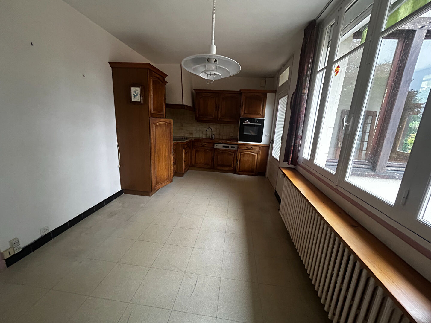 Charmante maison ancienne de 130 m² comprenant : Véranda, entrée, salon, cuisine aménagée et équipée, trois chambres, deux salles d'eau, deux wc.