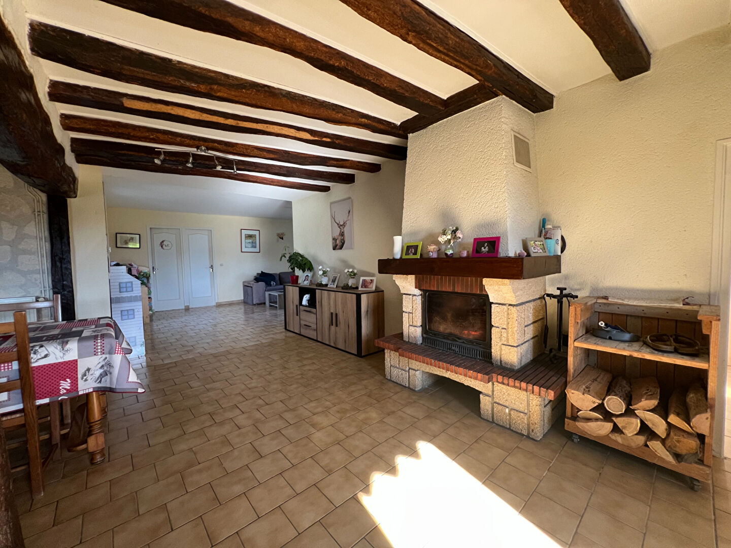 Vous découvrirez un vaste séjour d'une superficie de 60 m² avec insert, ouvert sur une cuisine récente, aménagée et équipée.