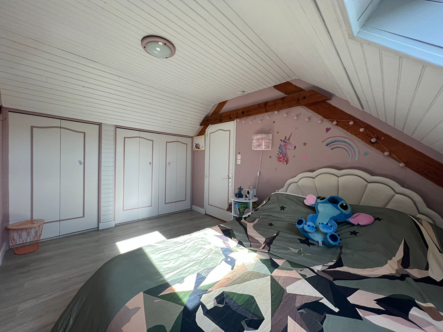 L'étage se compose de trois chambres avec placards, accessibles par deux escaliers distincts.