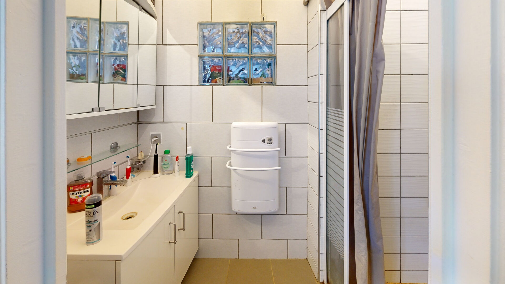 Le premier étage accueille une chambre climatisée et une salle d'eau.