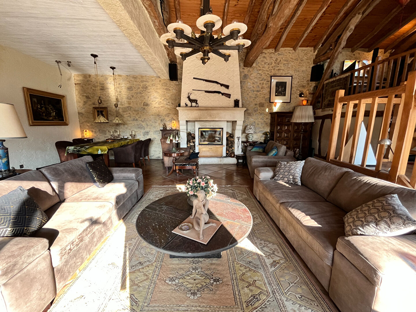 La maison, entièrement rénovée, dispose d'une entrée sur hall, un agréable séjour avec cheminée insert) et sa salle à manger de 62m² environ qui s'ouvre sur une grande terrasse. Une cuisine équipée avec arrière cuisine, une spacieuse mezzanine à usage de bureau avec accès à une 2ème terrasse privative. Un couloir desservant 3 chambres dont une avec dressing, 2 salles d'eau, wc.