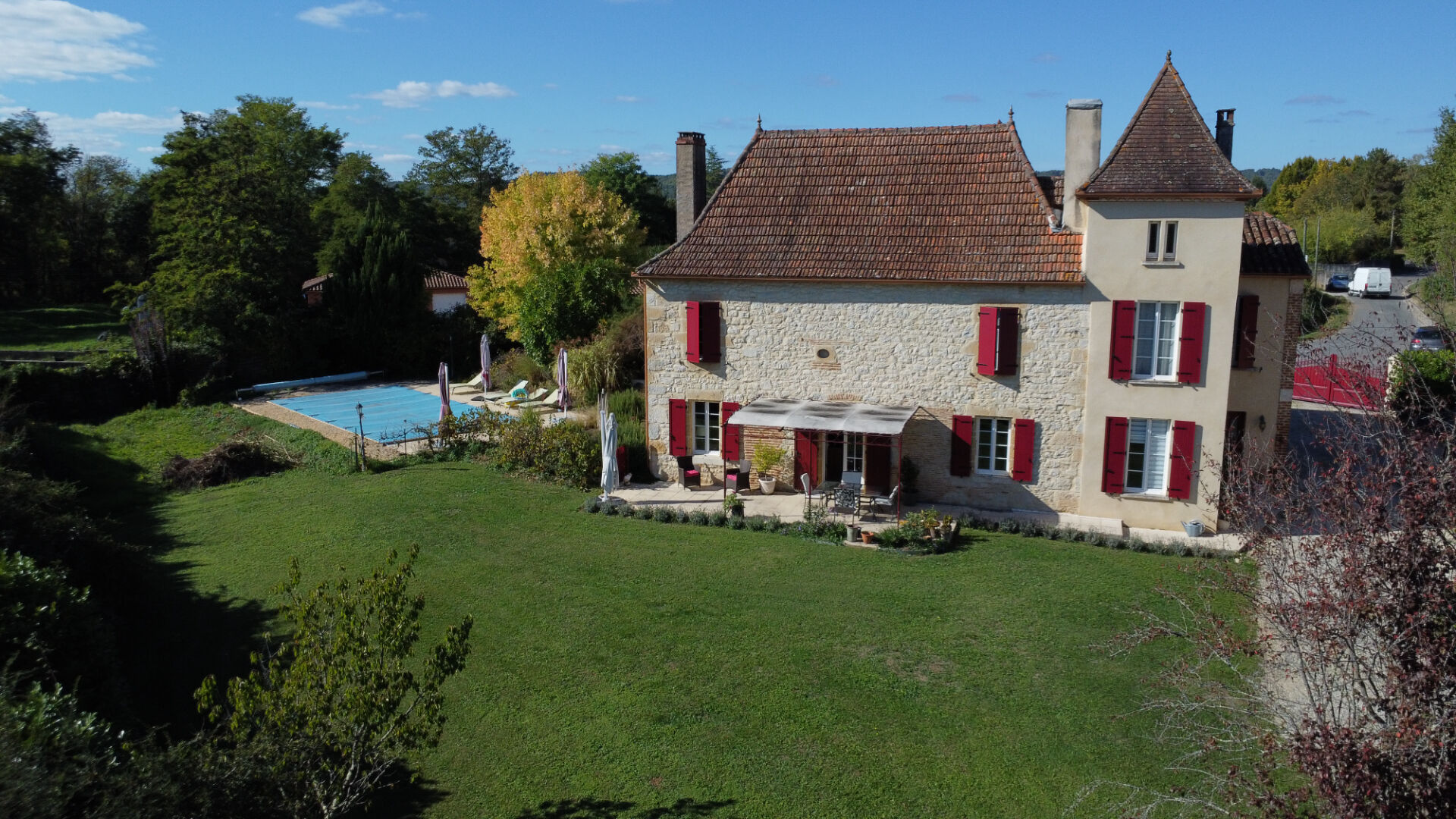 Une grange, un garage, un atelier et une piscine ensoleillée complètent cet ensemble quercynois.