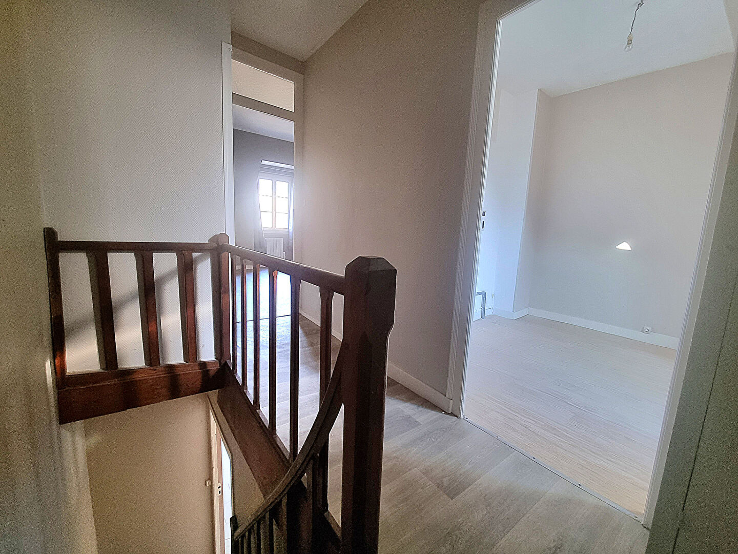 Au deuxième étage, un palier desservant un bureau, un WC indépendant et une suite parentale. Cette dernière comprend une chambre et une salle d'eau attenante.