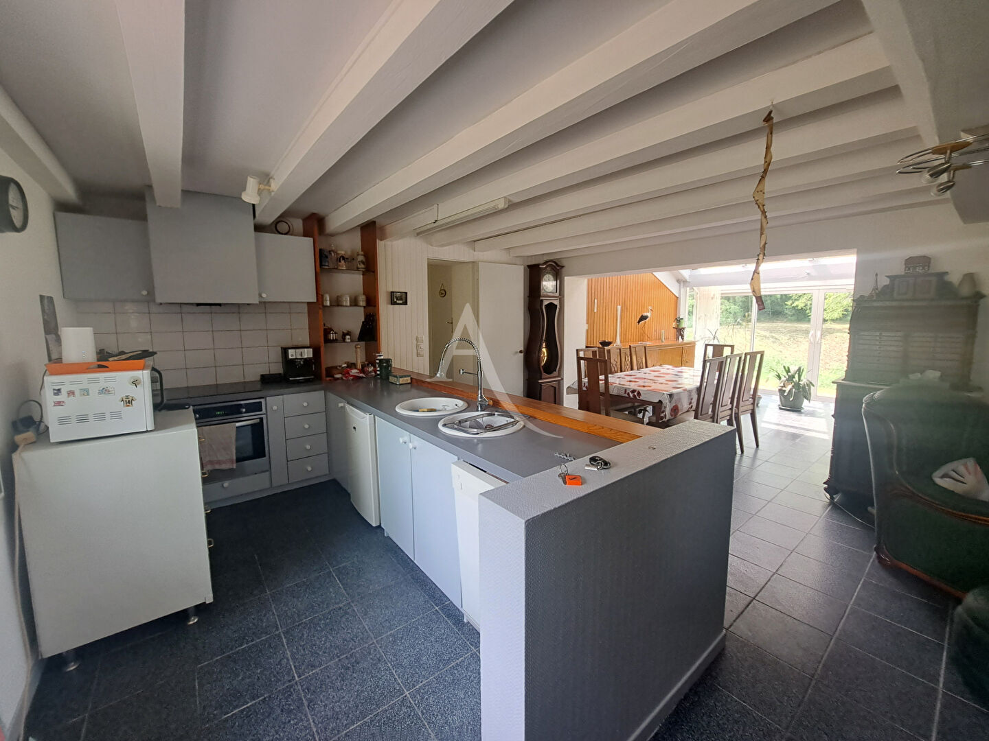 Nichée dans un cadre unique, cette propriété d'environ 104 m² vous offre un bel espace de vie lumineux de 60 m² ouvert sur une cuisine conviviale.