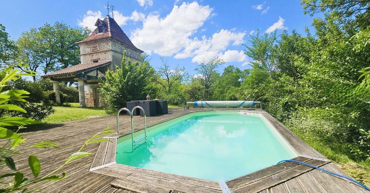 Pour participer au charme général de l'ensemble, plusieurs terrasses, couvertes et découvertes, une piscine (hors sol) et un pigeonnier, des murs d'enceinte en pierre et une vue magnifique !