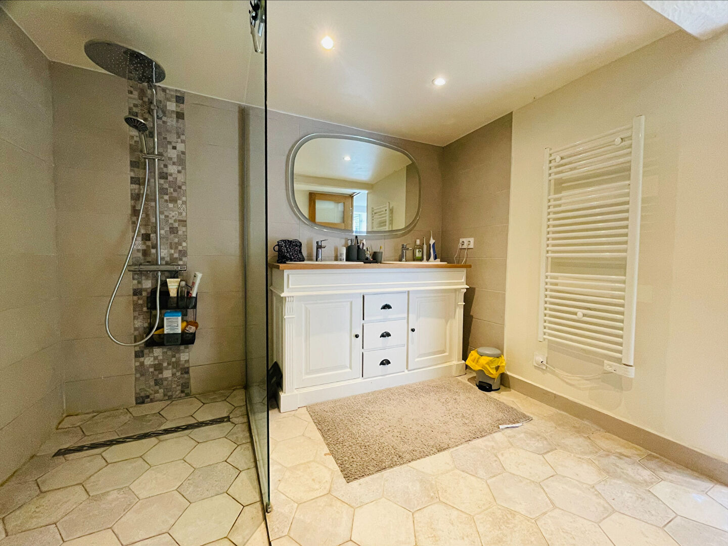 Elle se compose d'un vaste séjour avec poêle à granulés , cuisine ouverte , une salle d'eau rénovée avec gout, un WC indépendant , 3 grandes chambres , dressing , une salle de bain avec WC et bureau .