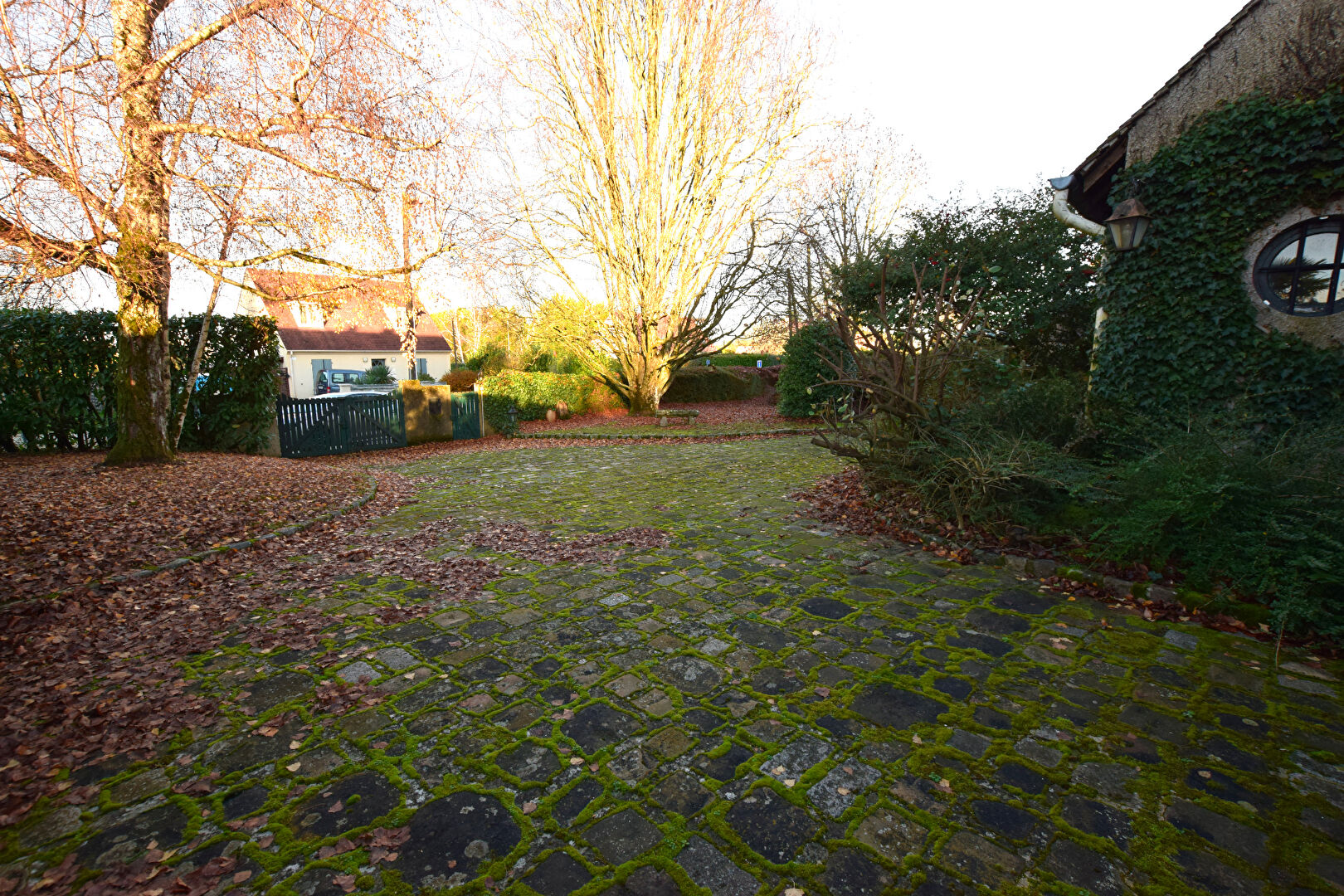 L'accès se fait par une élégante entrée pavée. Au rez-de-chaussée, la maison se compose d'un hall d'entrée, d'une cuisine, d'un vaste séjour traversant de plus de 55 m² agrémenté d'une cheminée, ainsi que d'une buanderie, d'une chaufferie et de WC indépendants.