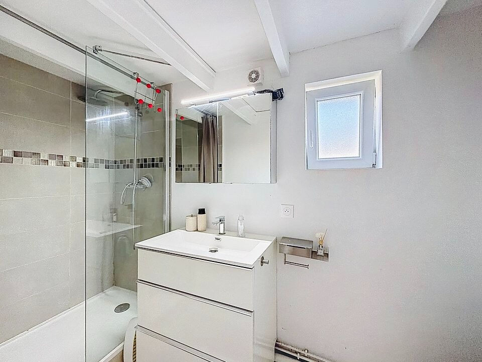 Elle se compose d'un double séjour lumineux, une cuisine indépendante aménagée et équipée, une buanderie et la possibilité d'installer un WC en rez-de-chaussée avec toutes les arrivées déjà prêtes.