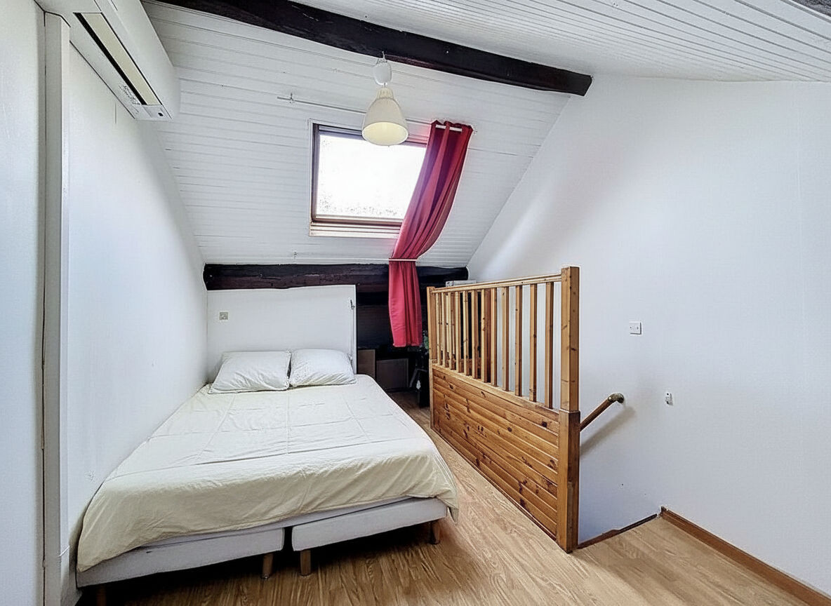 A l'étage, 3 chambres dont une de plus de 18m2, une salle d'eau avec WC, et au deuxième étage une grande chambre avec rangements.