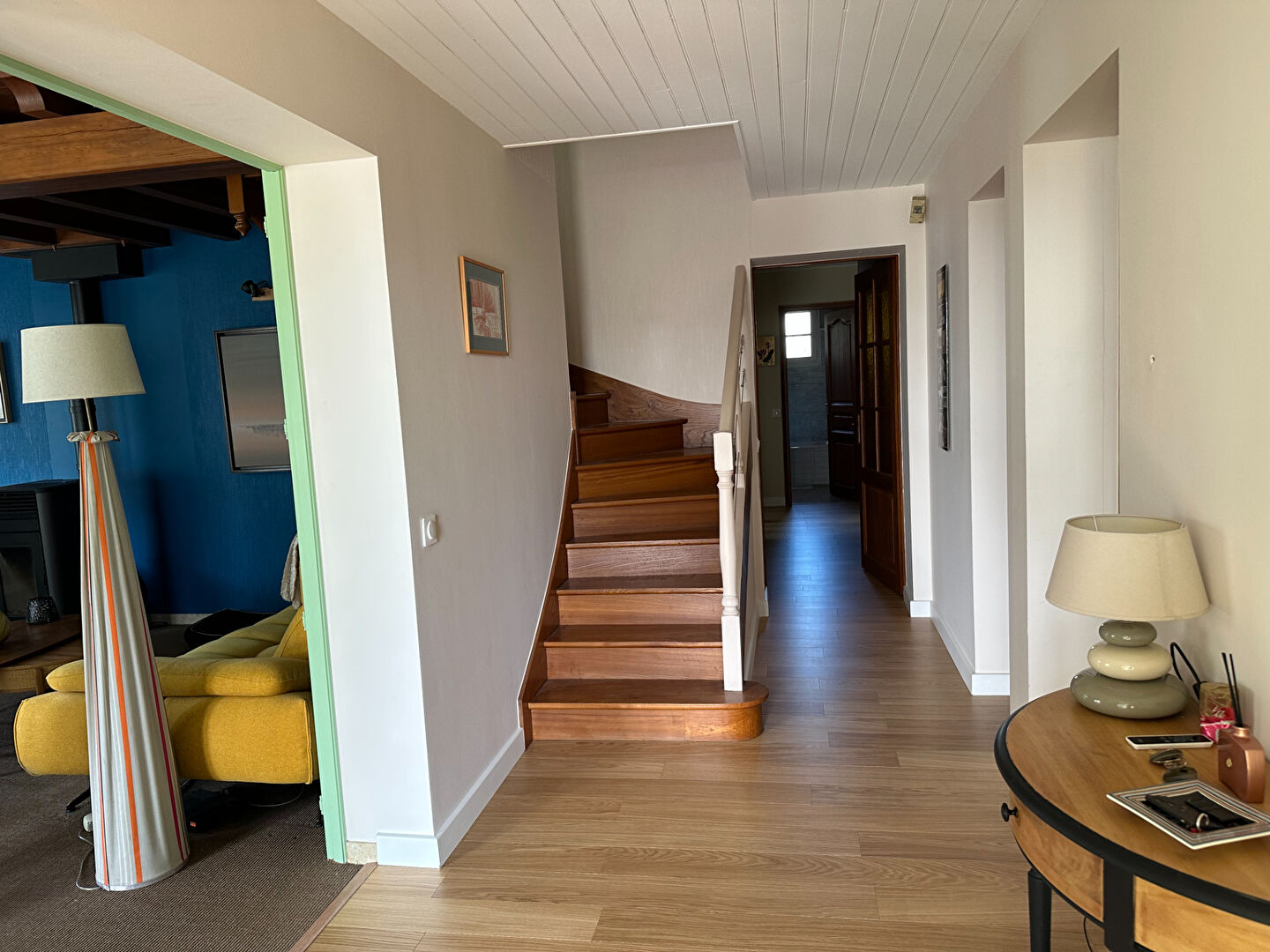 Ce bien spacieux dispose de 4 chambres et d'un bureau, parfait pour accueillir une famille ou aménager un espace de travail. Vous serez séduits par la belle pièce de vie lumineuse, offrant une grande hauteur sous plafond et des poutres apparentes, créant une ambiance chaleureuse et aérée.