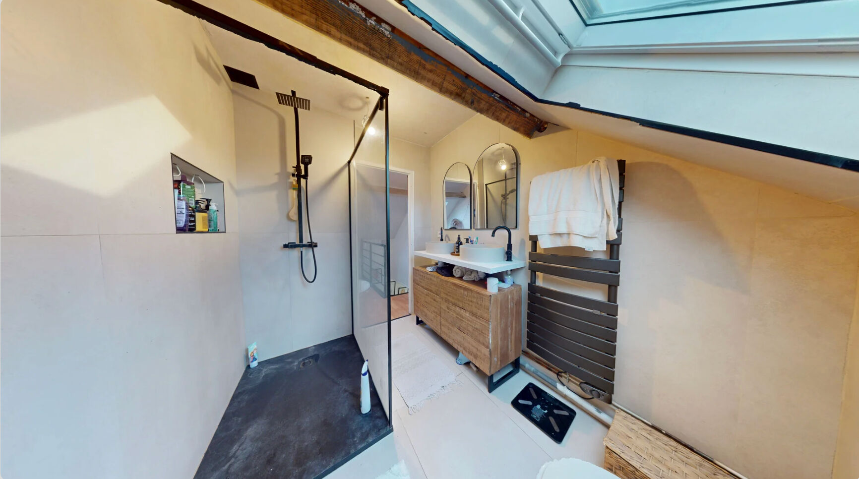 A l'étage, une pièce palière desservant des espaces de rangement et un coin lecture, une salle d'eau et de bains avec WC, trois chambres et une pièce pouvant servir de dressing.