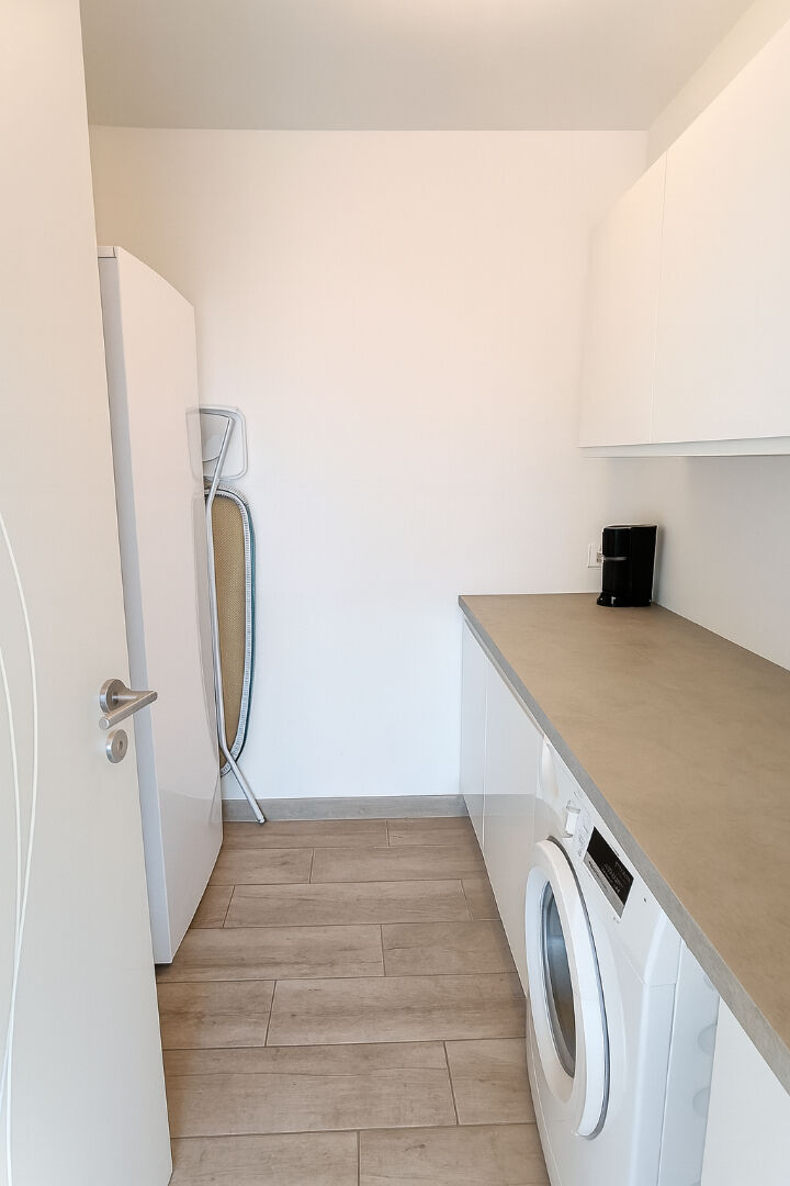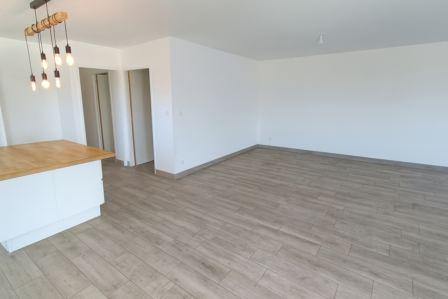 Dès l'entrée, vous accédez à une grande pièce de vie qui intègre une cuisine ouverte. Un dégagement mène vers la partie nuit, où vous trouverez 3 chambres. Une buanderie indépendante complète l'agencement, apportant un espace pratique.