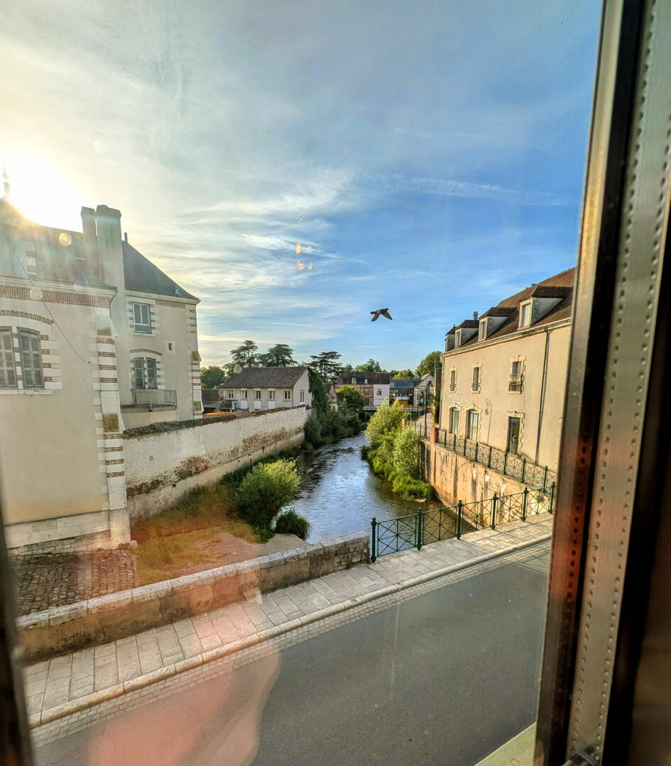 Préau - terrasse largement ouvert avec une belle vue sur la Sauldre permettant de profiter d'un beau panorama.