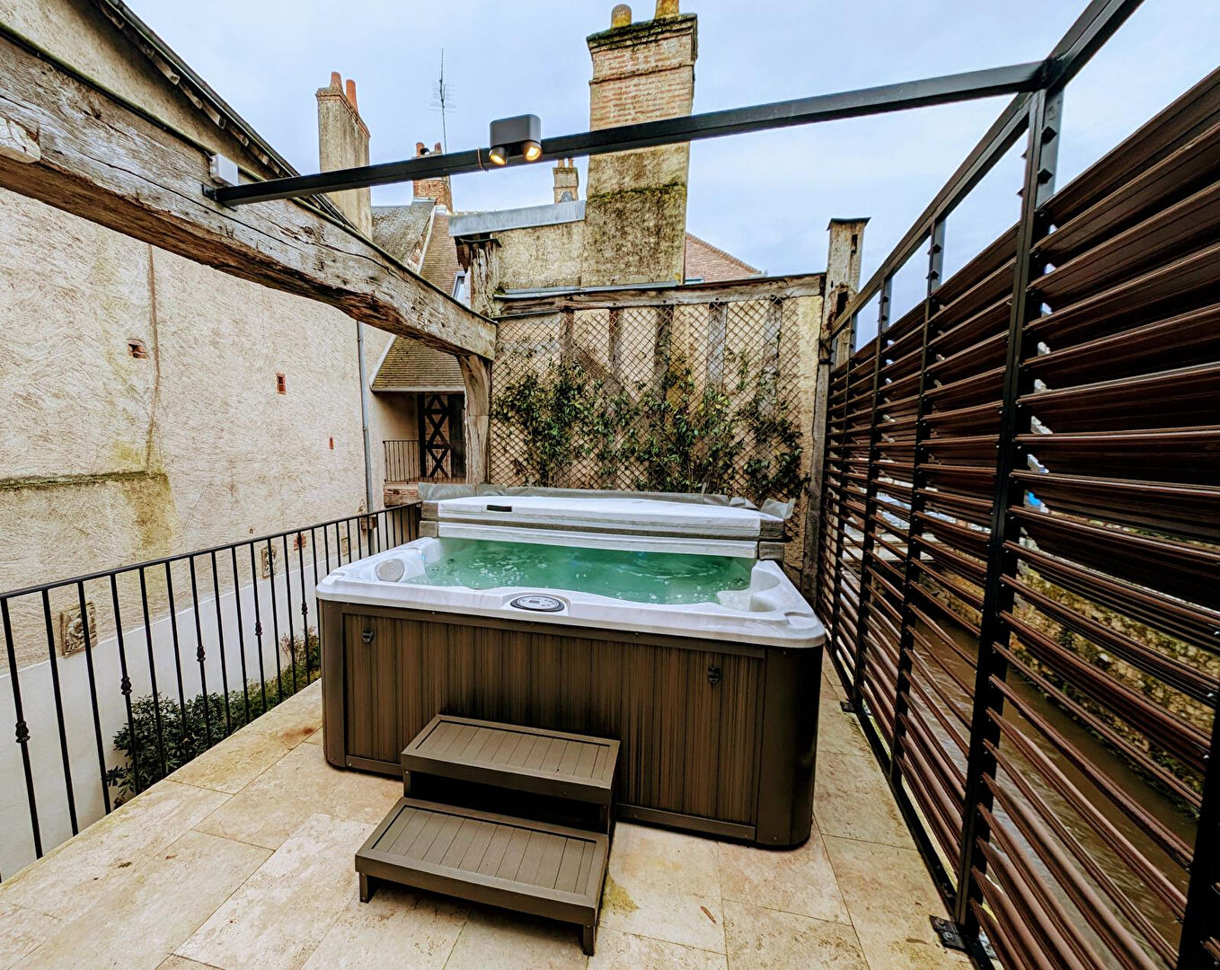 L'espace extérieur clos de vieux murs, accueille un jacuzzi.
