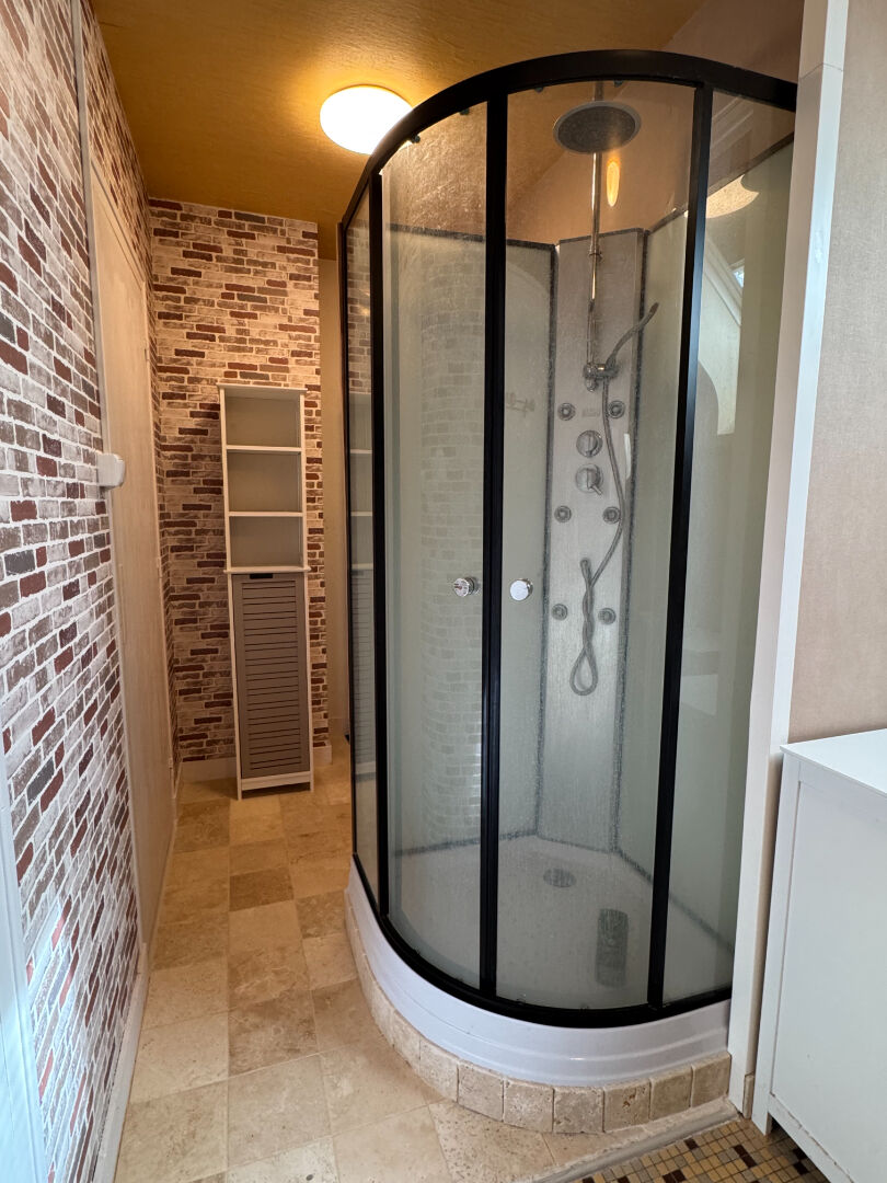De plain-pied : entrée - séjour salon avec cheminée, accès direct sur terrasse - cuisine aménagée - chambre - salle d'eau avec douche italienne et wc.