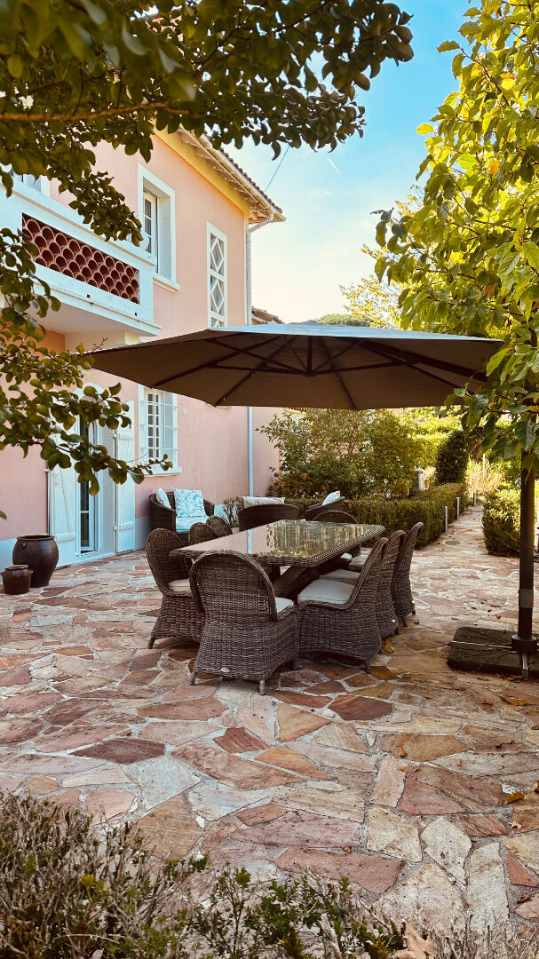 Et une seconde terrasse d'environ 100 m², carrelée en pierre du Brésil, parfaite pour recevoir famille et amis.