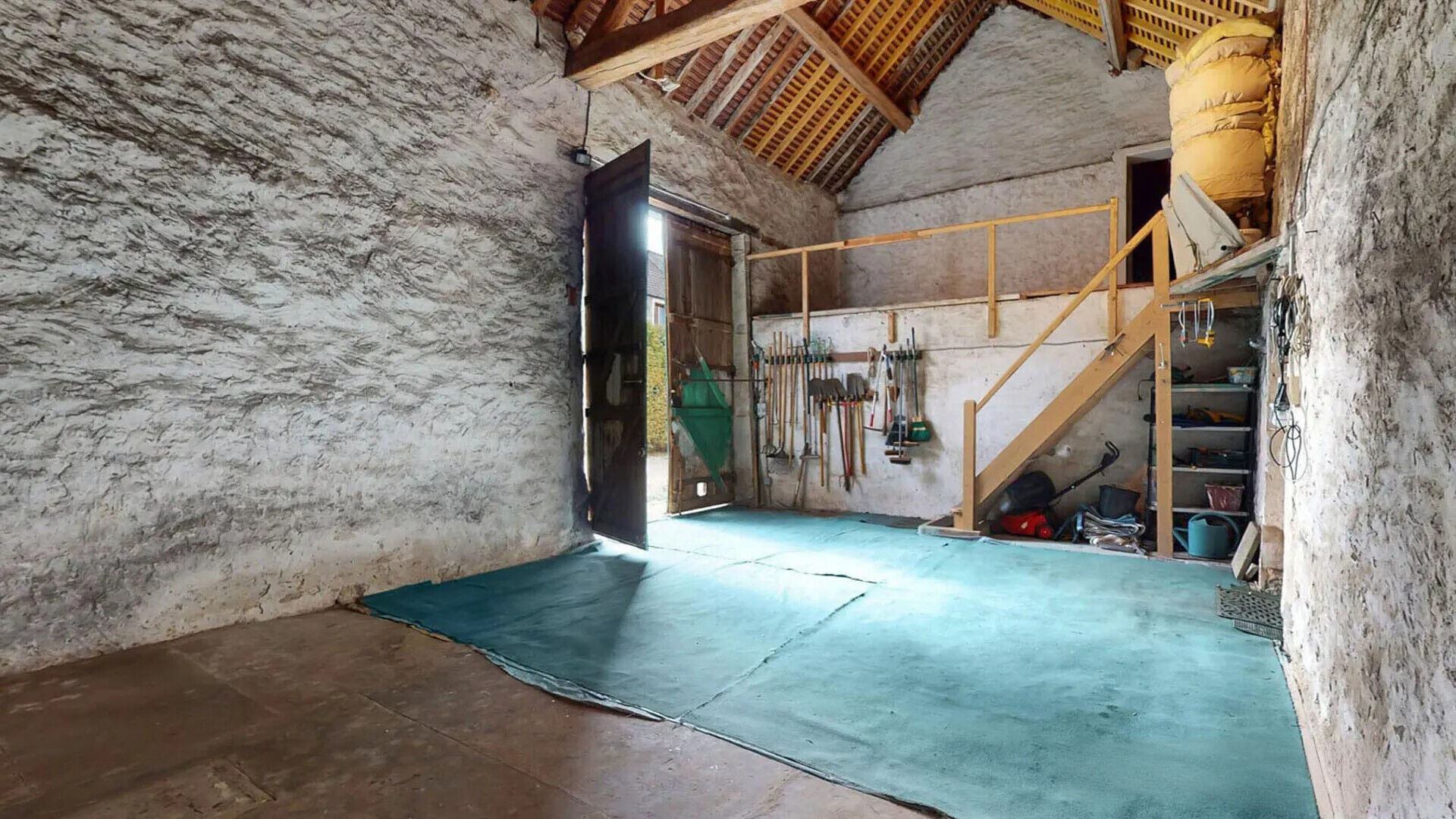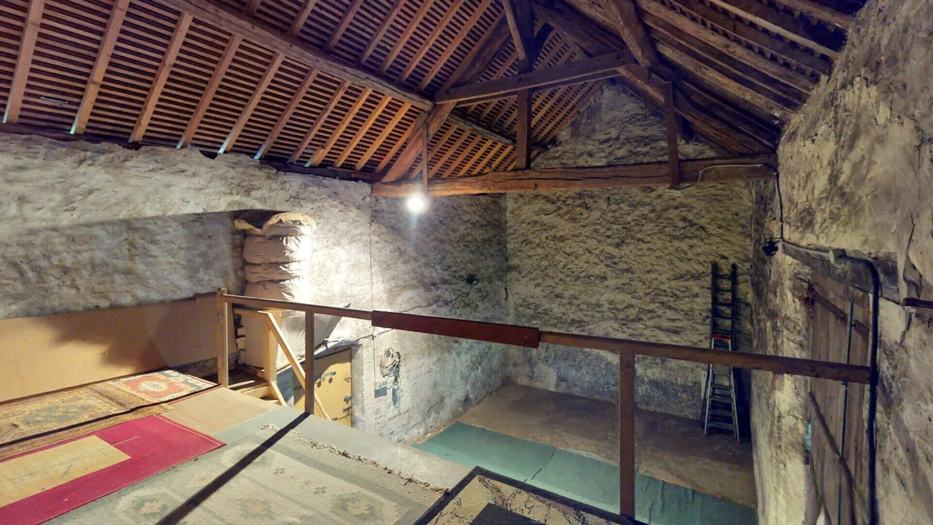 Une grange en pierres de 90m² (gros potentiel), un studio indépendant de 17m² et une cave voutée.